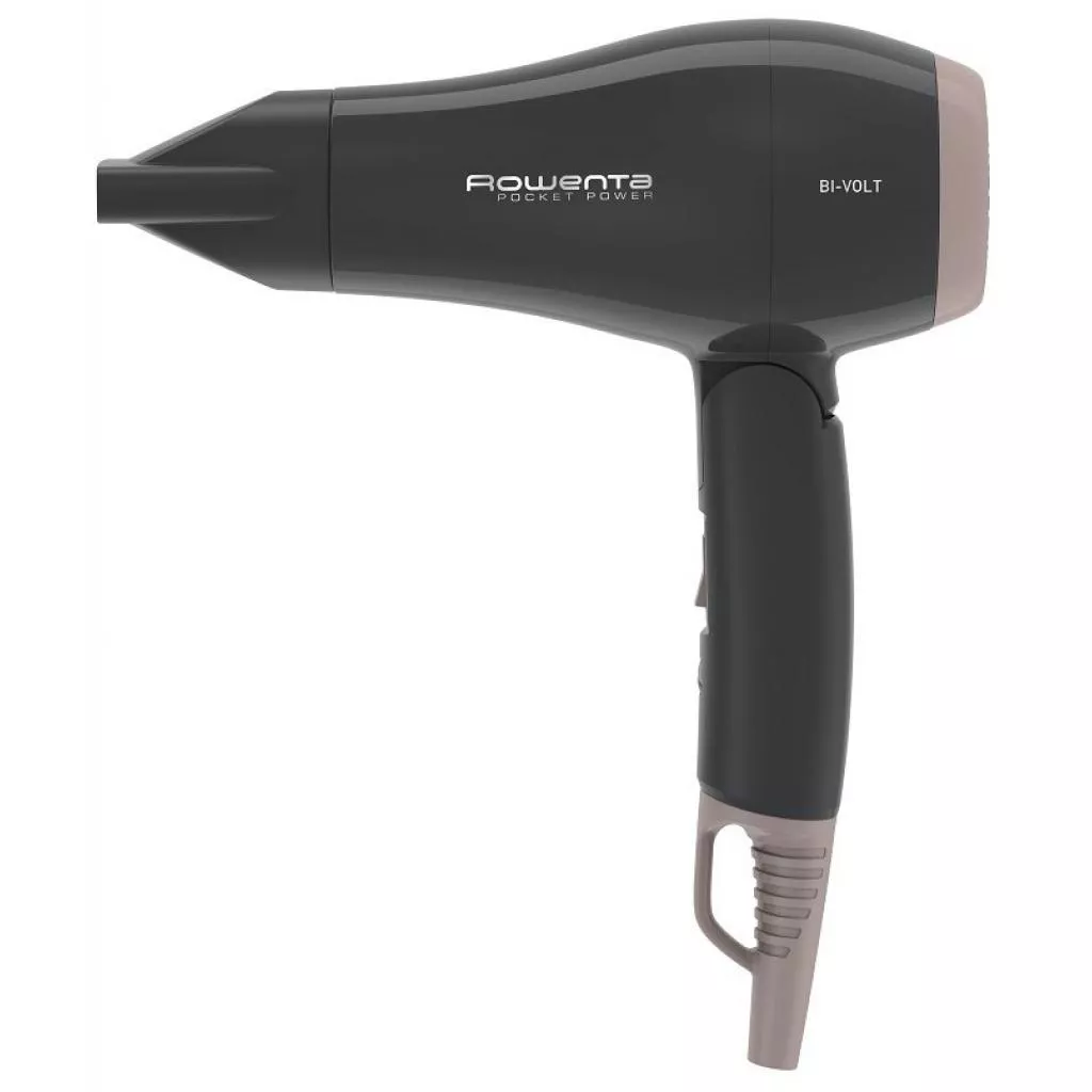 Фен Rowenta CV1720 предназначен для дорожных условий. Чтобы соответствовать дорожному классу, производитель установил в него не слишком мощный компактный двигатель на 1200 Вт. При помощи такого мотора можно комфортно работать на двух скоростях, переключаясь между которыми вы осуществляете регулирование интенсивности воздушного потока. Особенностью модели стал форм-фактор со складной ручкой: за счет такого строения фен можно легко уместить в небольшом пространстве, что особенно ценно в путешествии.
