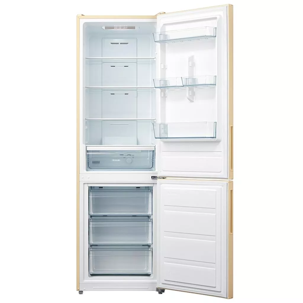 Двухкамерный холодильник DELFA DBFN-190B выполнен в бежевом цвете. Морозильная камера расположена внизу. Использование утопленной ручки, вместо накладной, существенно снижает габариты устройства. Объемы морозильной и холодильной камер составляют 76 л и 219 л соответственно.