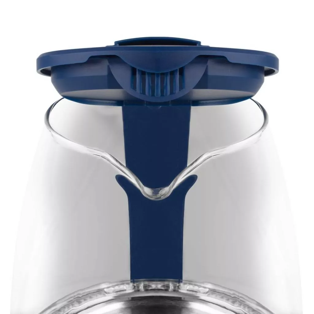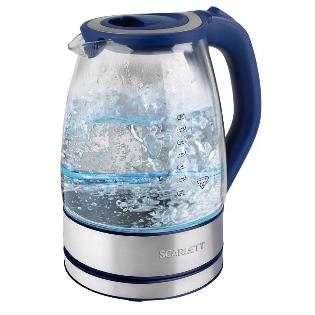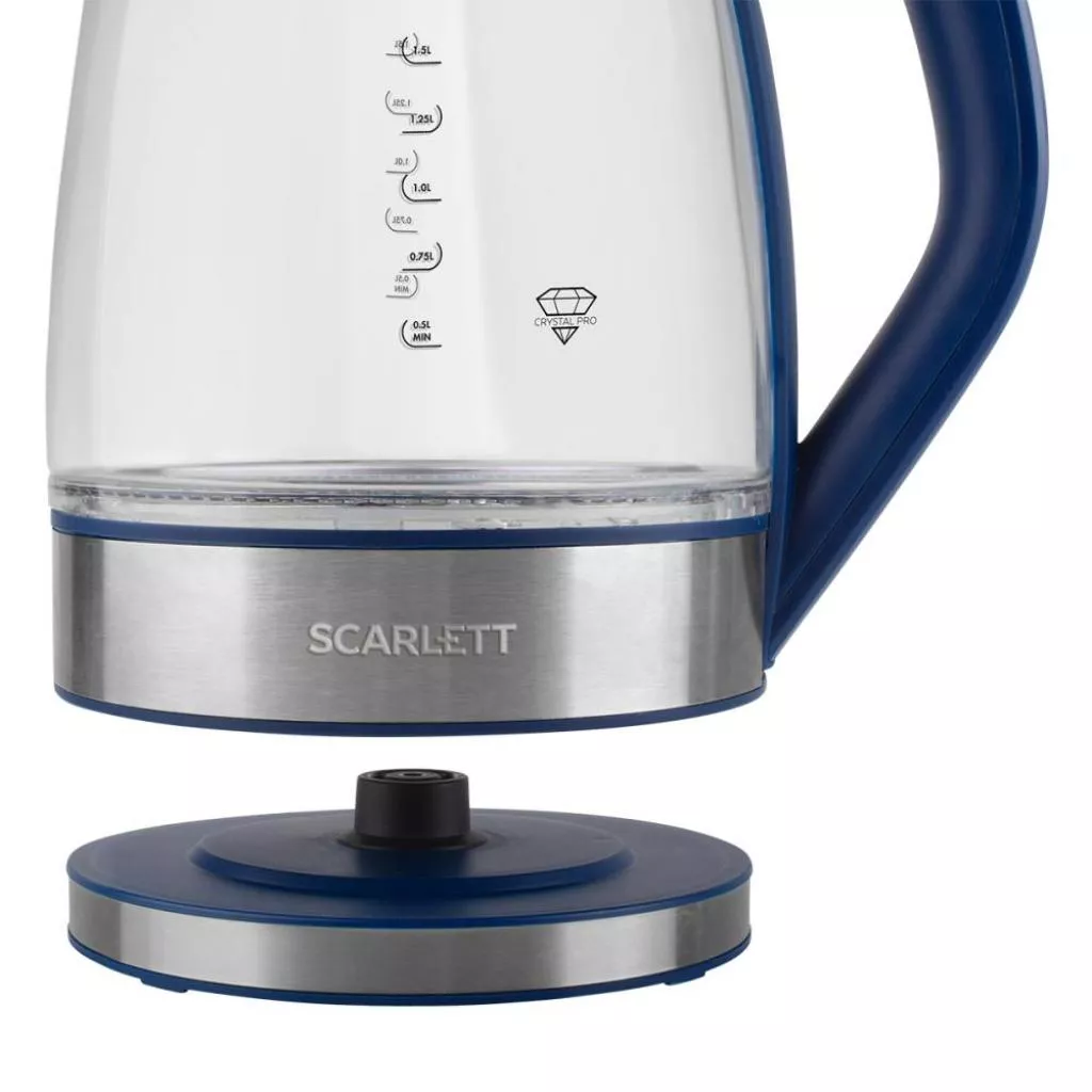 Электрочайник SCARLETT SC-EK27G46 мощностью 2200 Вт и оптимальным объемом 2 л оснащен традиционной системой открытия крышки.