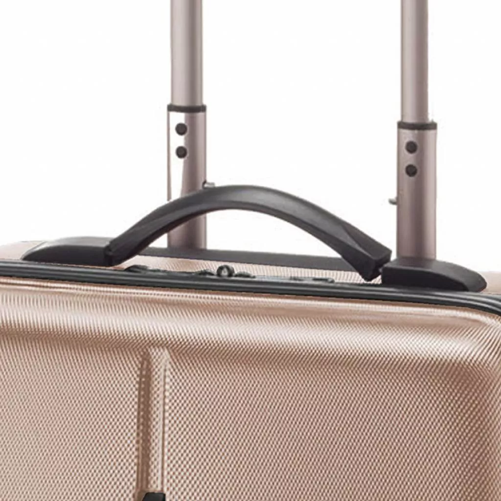 Чемодан оснащен парой надежных колес которые изготовлены из высокотемпературного термопластичного полиуретана (TPU). Материал обладает прочностью сравнимой с пластиком, гибкостью силикона, а так же имеет повышенную устойчивость к перепадам температур. Отличительной особенностью колес из TPU материала является снижение шума до минимума при качении чемодана по неровной поверхности. Благодаря устойчивости к истиранию материал колес отличается длительным сроком эксплуатации.