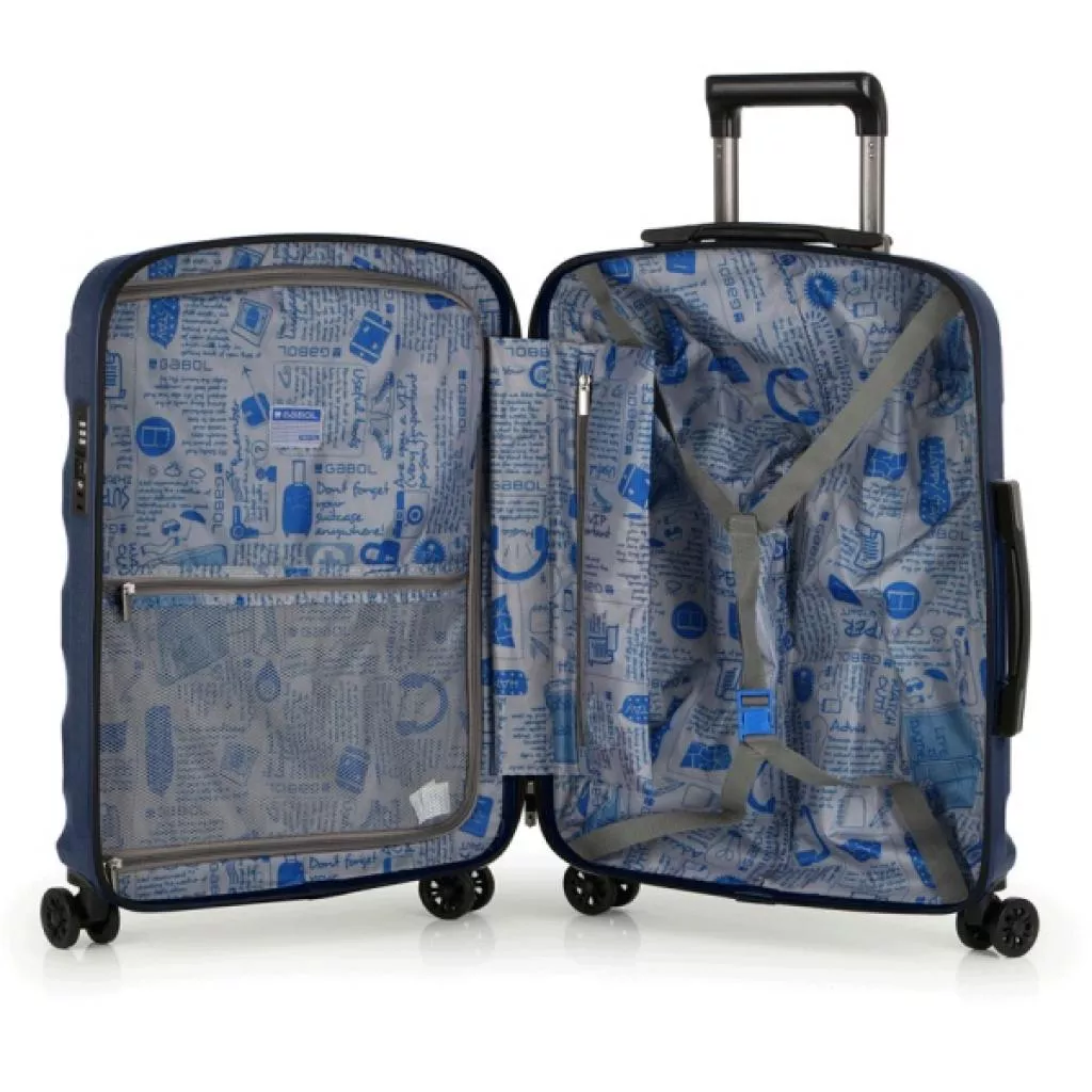 Чемоданы премиальной коллекции Air от Gabol выполнены из высокотехнологичного комбинированного материала - Polycarbonate / Aluminium fiber. Этот легкий, эластичный и в то же время прочный материал. Благодаря своим свойствам, материал устойчив к деформациям (после деформации принимает прежнюю форму), не растрескивается на морозе, и практически без видимых повреждений переносит удары и механические воздействия, что очень важно для чемоданов, перевозимых в багажных отделениях. Внутренний объем чемодана имеет ремни для фиксации вещей, а также дополнительные карманы на молниях для мелких аксессуаров.