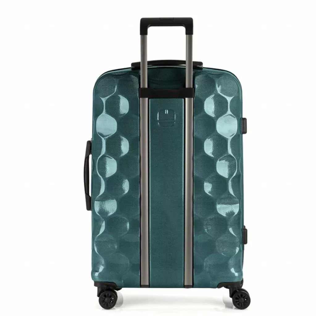 Чемодан оснащен четырьмя полноповоротными, спаренными колесами с возможностью независимого разворота каждого колеса на 360°. Системой предусмотрено равномерное перераспределения нагрузки на каждое колесо, что в свою очередь способствует плавному качению и маневренности чемодана, прилагая при этом минимум усилий.