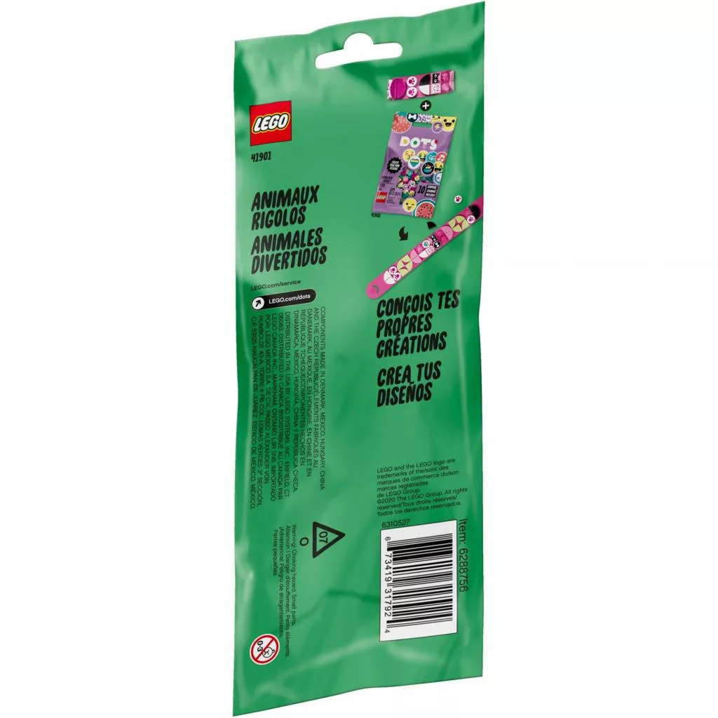 Наборы LEGO DOTs предназначены для творческих детей. Например, из элементов этого набора можно собрать браслет «Забавные животные». Дети смогут собрать браслет в своём стиле, а затем поменять плитки, чтобы создать дизайн, соответствующий их настроению, отражающий их увлечения и интересы. Забавный браслет, который можно украсить и показать друзьям. Предназначен специально для детских запястий самых разных размеров. Дети смогут использовать готовые или придумать свои дизайны.