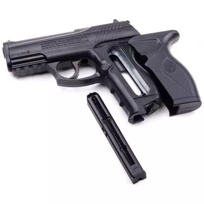 Пневматический пистолет CROSMAN C11 (C11) - среднемощный газобалонный пистолет от американского оружейного концерна Crosman, который рассчитан на использование начинающими стрелками. Он использует патроны типа ВВ, которые благодаря своему покрытию смягчают движение пули в стволе, во время выстрела. Так достигаются прекрасные показатели кучности и меткости. Благодаря скорости пули, равной 150 м/с, можно практиковаться в прицельной стрельбе на расстояния 15-20 метров. В пистолете применяются 12 гр. баллоны со сжатым газом CO2. Одного такого баллона хватает на сотню выстрелов.Рейтинг страницы: 4.9