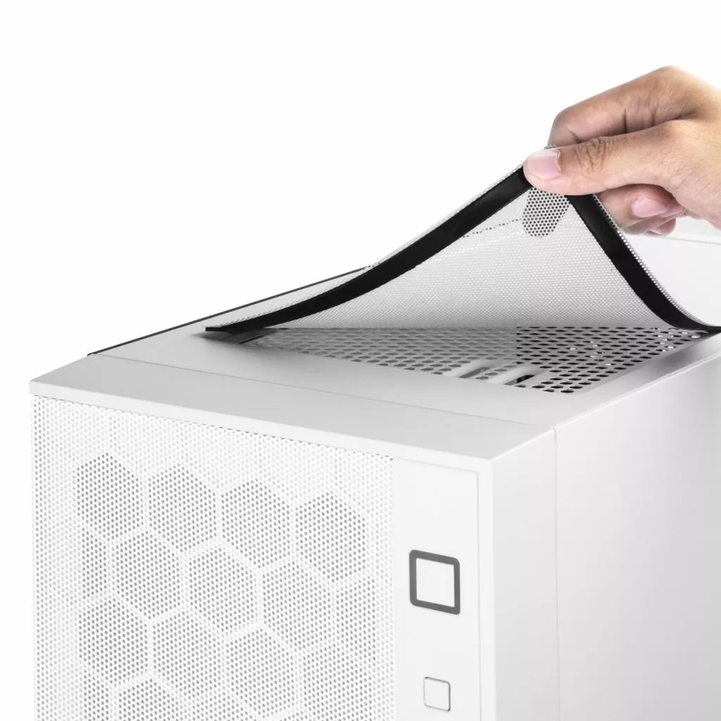 Полностью сетчатая передняя панель и 6 креплений для вентиляторов в укороченном корпусе создают беспрепятственный путь воздушного потока для эффективного охлаждения внутренних компонентов.