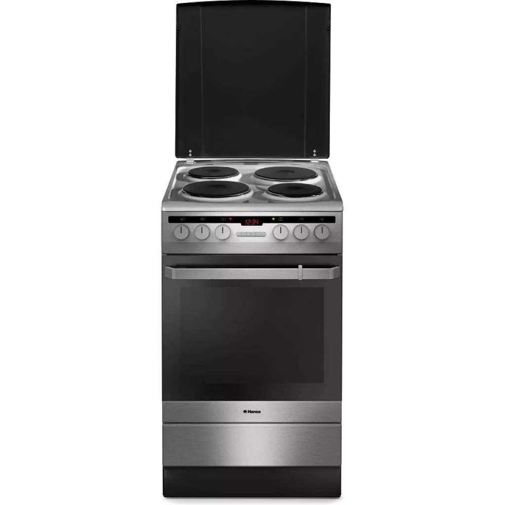 Плита Hansa FCEX 58210 (FCEX58210)- полностью электрическая плита модельного ряда Integra, в которой отлично сочетаются доступная цена, стильный дизайн, простота и удобство использования, высокое качество приготовленных блюд. На варочной поверхности размещены 4 чугунные электрические конфорки различного диаметра для приготовления любимых блюд в посуде различного размера. Заднюю кухонную стену от жировых загрязнений защищает металлическая крышка. Плита имеет цифровой дисплей и электронный таймер для программирования продолжительности приготовления блюд в духовке с автоматическим отключением и подачей звукового сигнала.