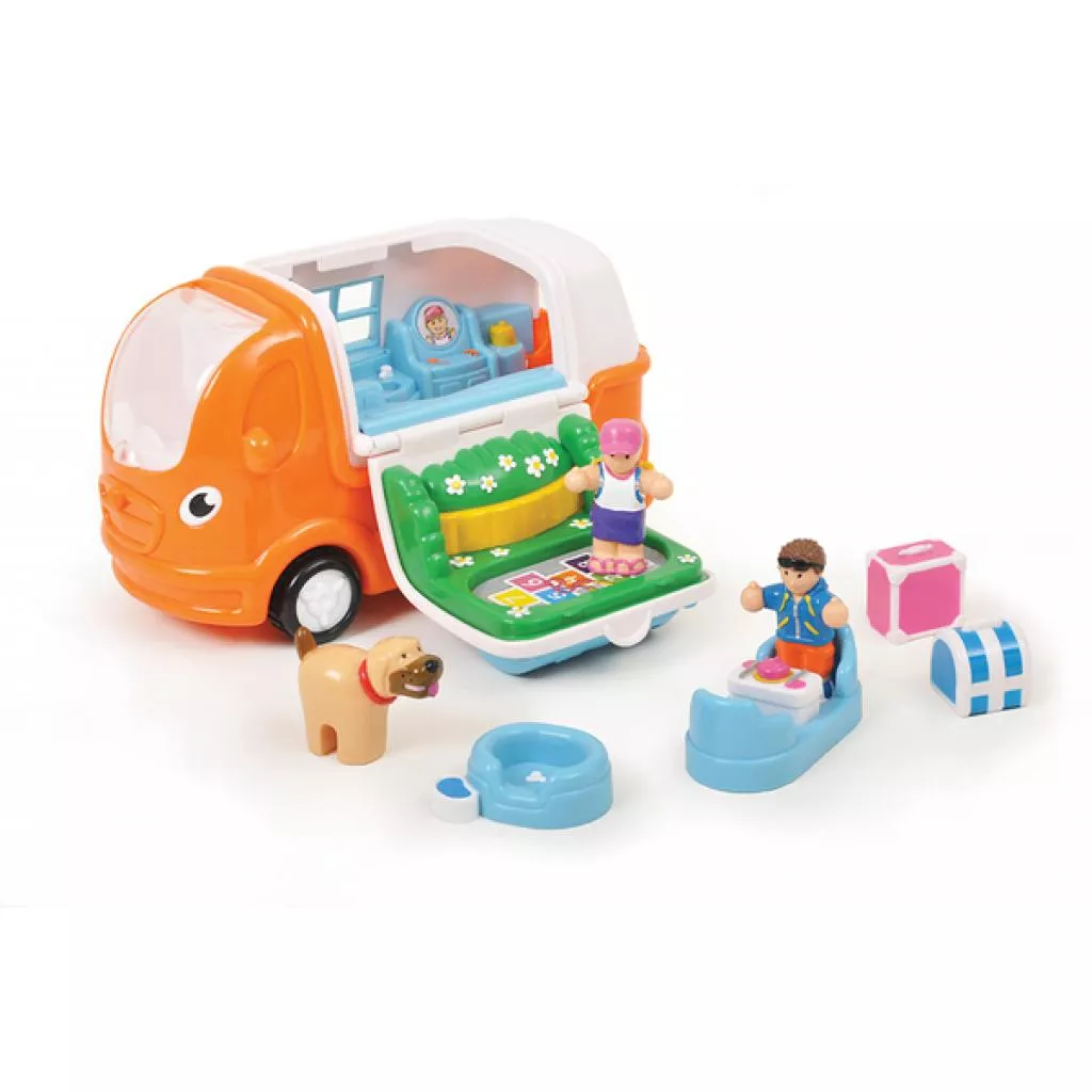 Загружайте чемоданы в Автофургон Кейси, размещайте пассажиров и отправляйтесь за приключениями! С помощью руки фигурки нажмите волшебную кнопку WOW, чтобы открыть заднюю дверь и позволить всем выйти. Поднимите крышу, и перед Вами откроется складная игровая площадка с фигурками играющих мальчика и девочки.
