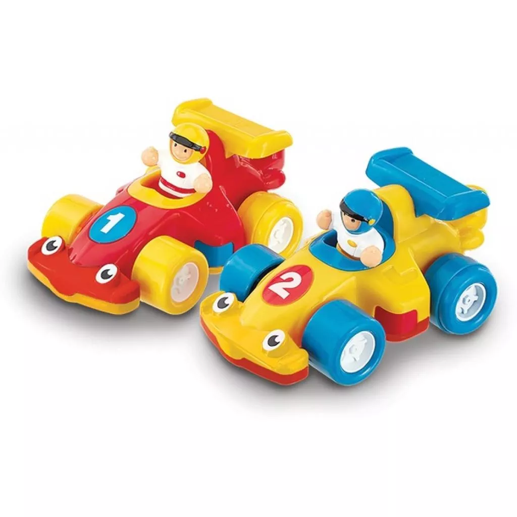 Гоночные автомобили оснащены задними магнитными крючками, поэтому эта скоростная гоночная парочка совместима со всеми прицепами от WOW Toys.