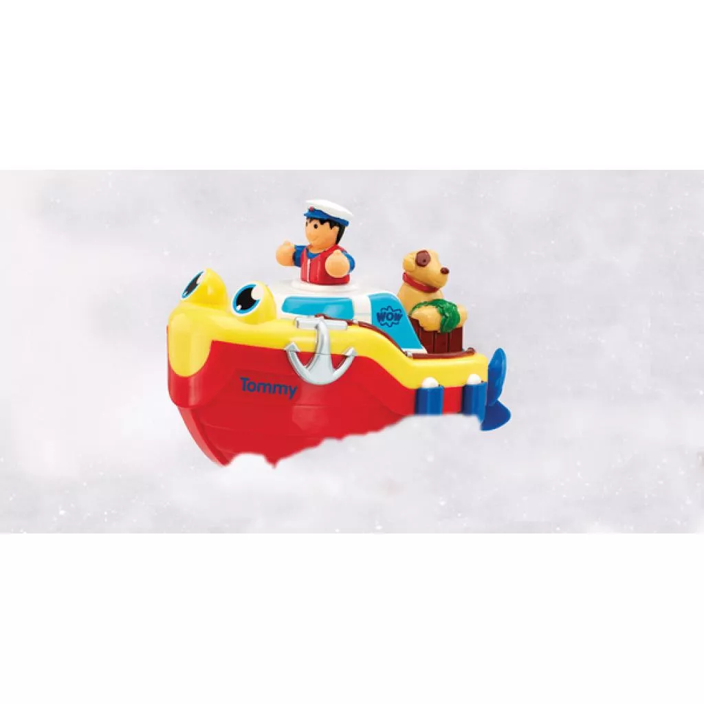 Запустите Томми в ванну и увидите, что он плавает, как настоящая лодка! Раскрутите фигурку капитана, чтобы запустить мощный пропеллер и Toмми стремительно помчится по волнам.