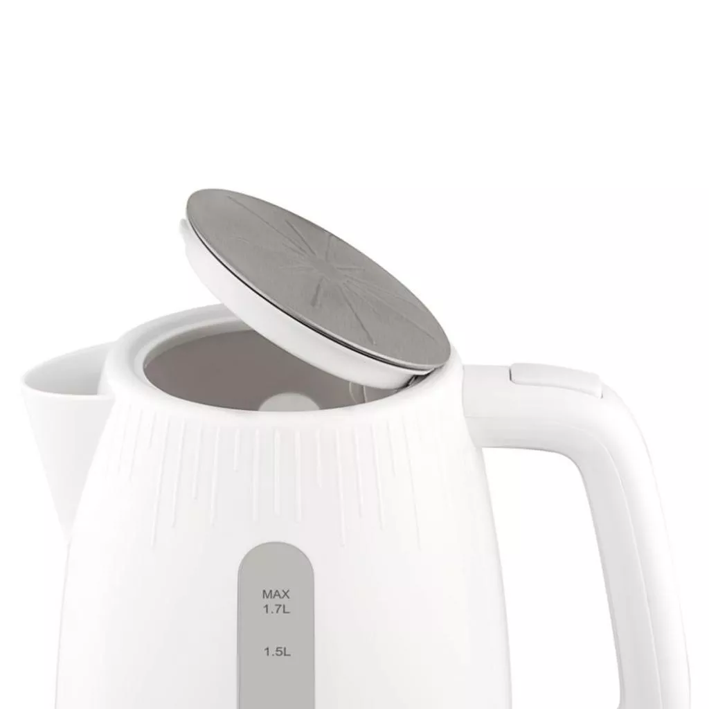 Для контроля уровня воды в чайнике есть специальное окно с нанесенной шкалой объема воды. Предусмотрена система открытия крышки с помощью кнопки на ручке чайника. Кнопка включения прибора расположен снизу отдельно. Во время работы чайника горит световой индикатор. Для удобства имеется отсек для хранения электрошнура – это позволяет лучше организовать пространство вокруг чайника. Ручка чайника выполнена в эргономичном дизайне для большего комфорта пользования прибором. Поворот на подставке доступен на 360 градусов.