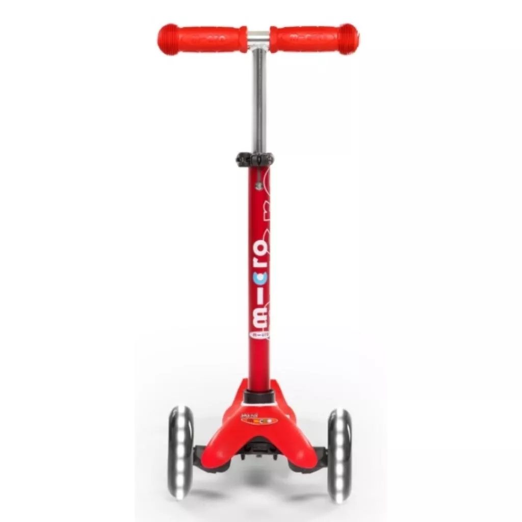 Самокаты серии Mini Micro Deluxe LED имеют по 4 встроенных светодиода белого цвета в передних колесах, которые светятся во время движения.