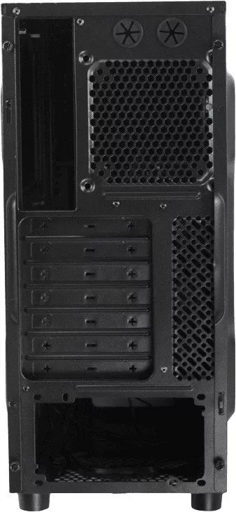 Корпус окрашен в черный цвет и имеет: безвинтовые крепления, закругленные края стали, высококачественный пластик. Присутситвуют необходимые разъемы и интерфейсы, такие как USB 3.0/2.0, аудио-разъем и разъем для микрофона.