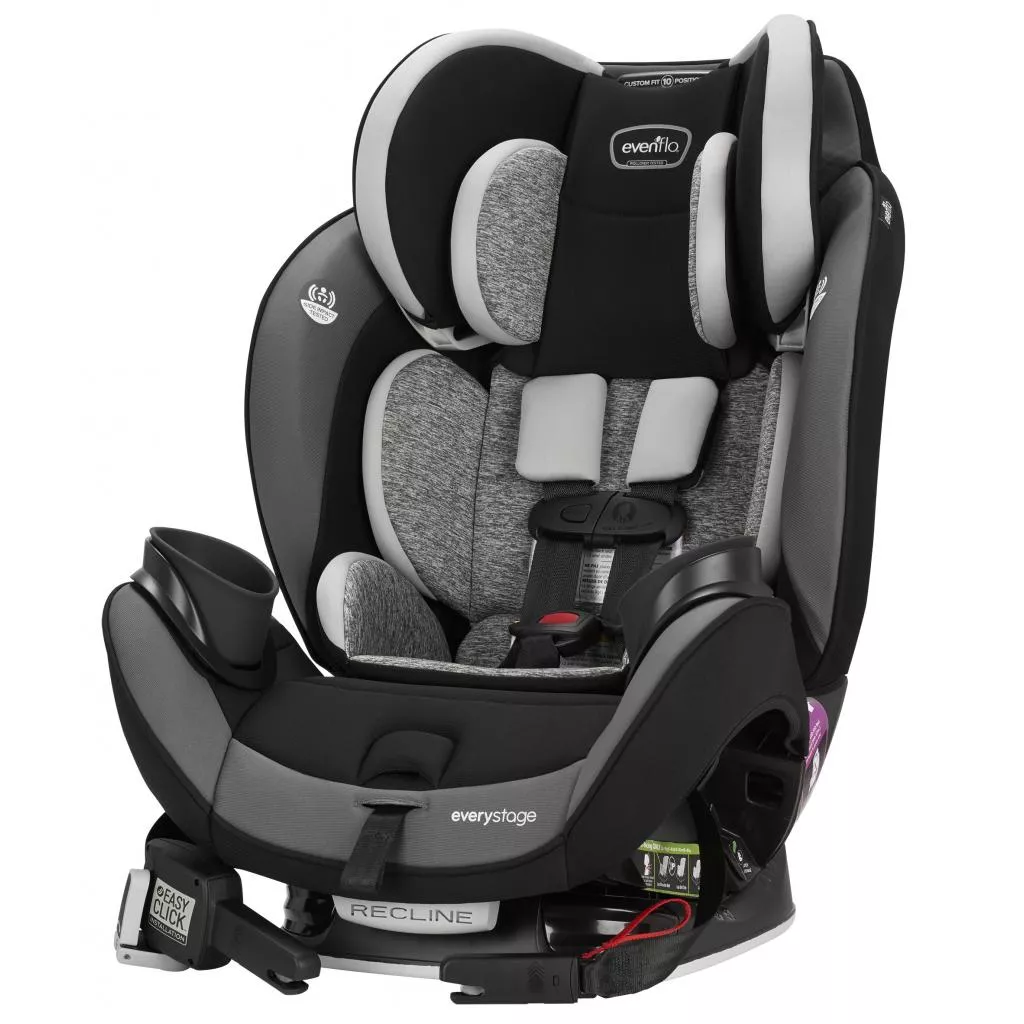 Универсальное детское автокресло Evenflo EveryStage разработано для перевозки детей от самого рождения и до достижения ими возраста в 14 лет.