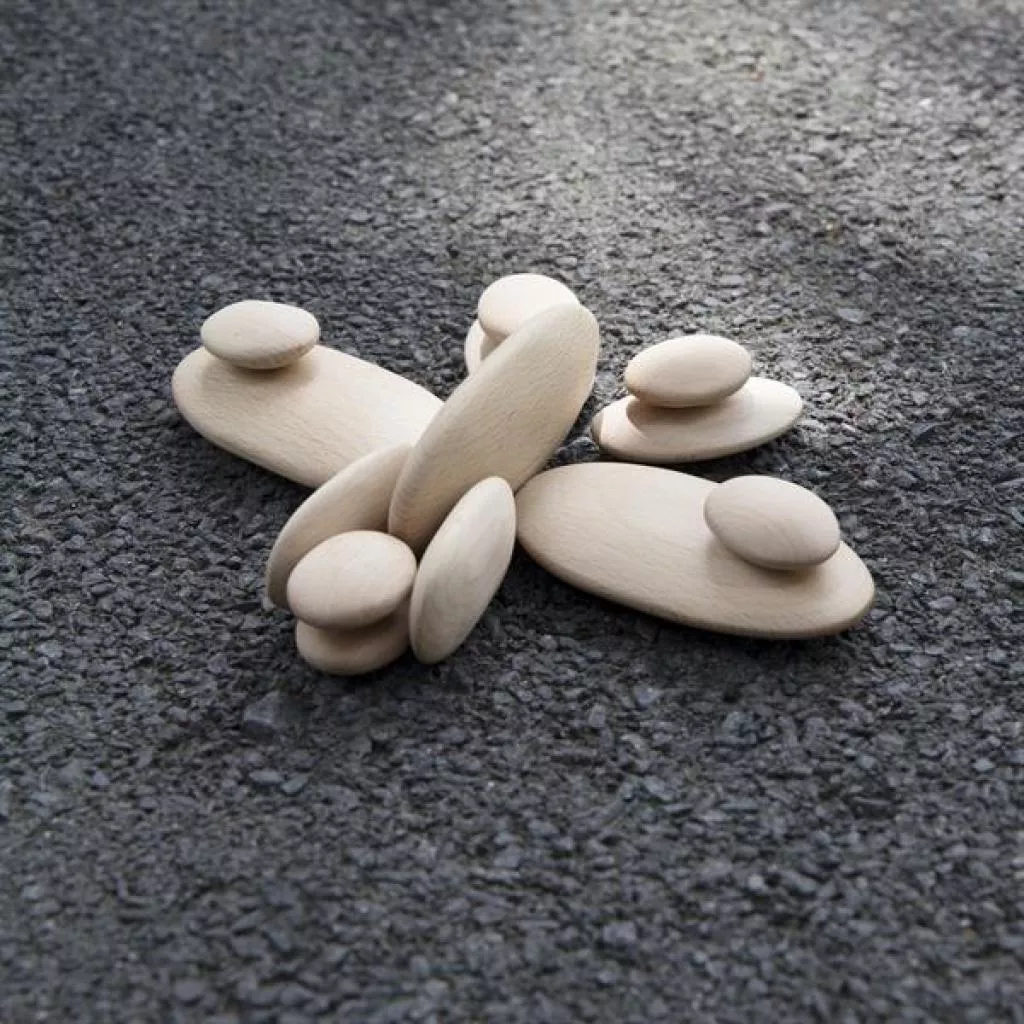 Органические деревянные строительные блоки в виде булыжника. Детали из дерева гладко отполированы, подчеркивают естественную текстуру и цвет дерева. Различные размеры помогают детям различать вес. Карточки для вдохновения побуждают детей к творчеству с использованием натуральных строительных элементов. Возможно использование в помещении и на улице. Хранить в прохладном, сухом месте, вдали от прямых солнечных лучей.Набор из 20 штук. Подходит для детей старше 2 лет.