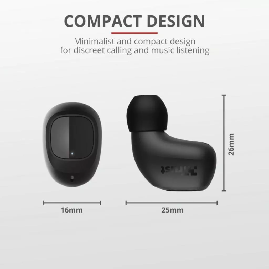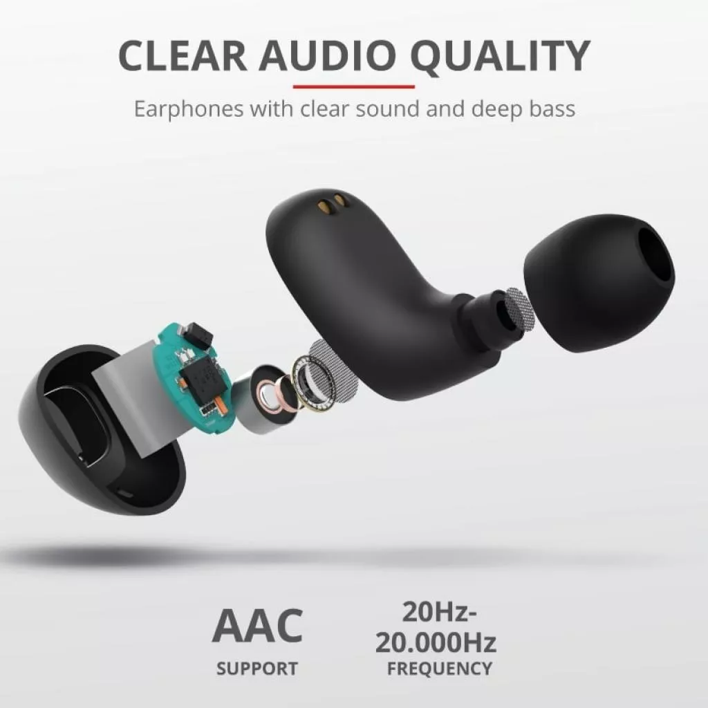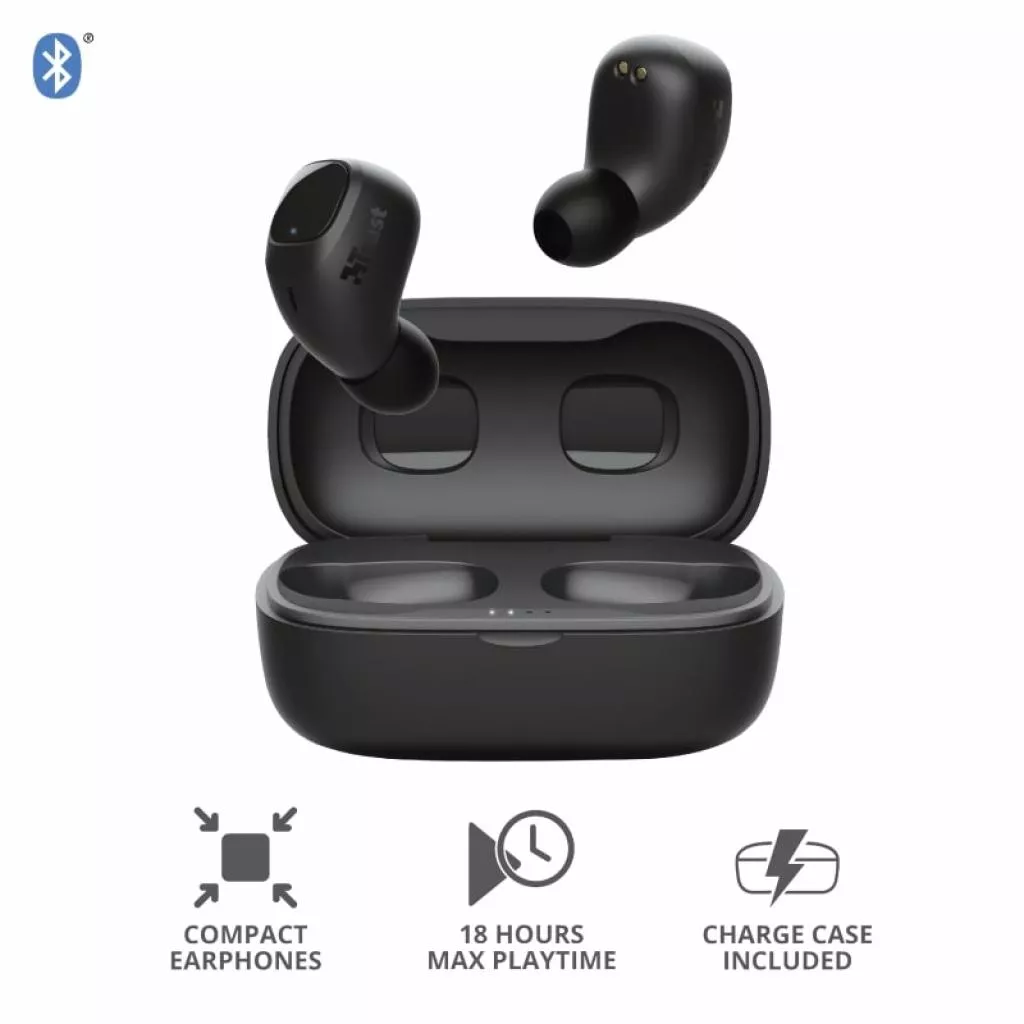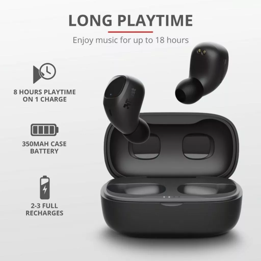 Полностью беспроводные наушники Trust Nika Compact порадуют отличным чистым звучанием и продолжительной автономной (без подключения к сети) работой. Гарнитура отлично подойдет каждодневного использование (эксплуатации) и телефонных звонков. Полное отсутствие каких-либо кабелей обеспечивает полную свободу движений, после которой Вы уже не захотите возвращаться на "провод". Защитный зарядный чехол со встроенным перезаряжаемым аккумулятором обеспечит еще как минимум 2 полных подзарядки наушников, что в общей сложности даст до 18 часов беспрерывной автономной (без подключения к сети) работы. Три пары амбушюр разного размера обеспечивают комфортное прослушивание музыки в течение многих часов.Рейтинг страницы: 4.7