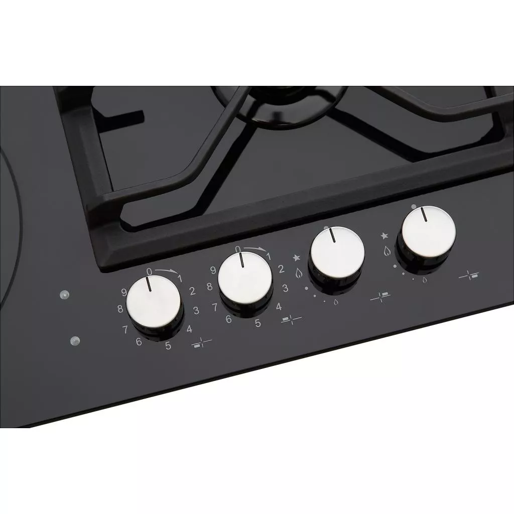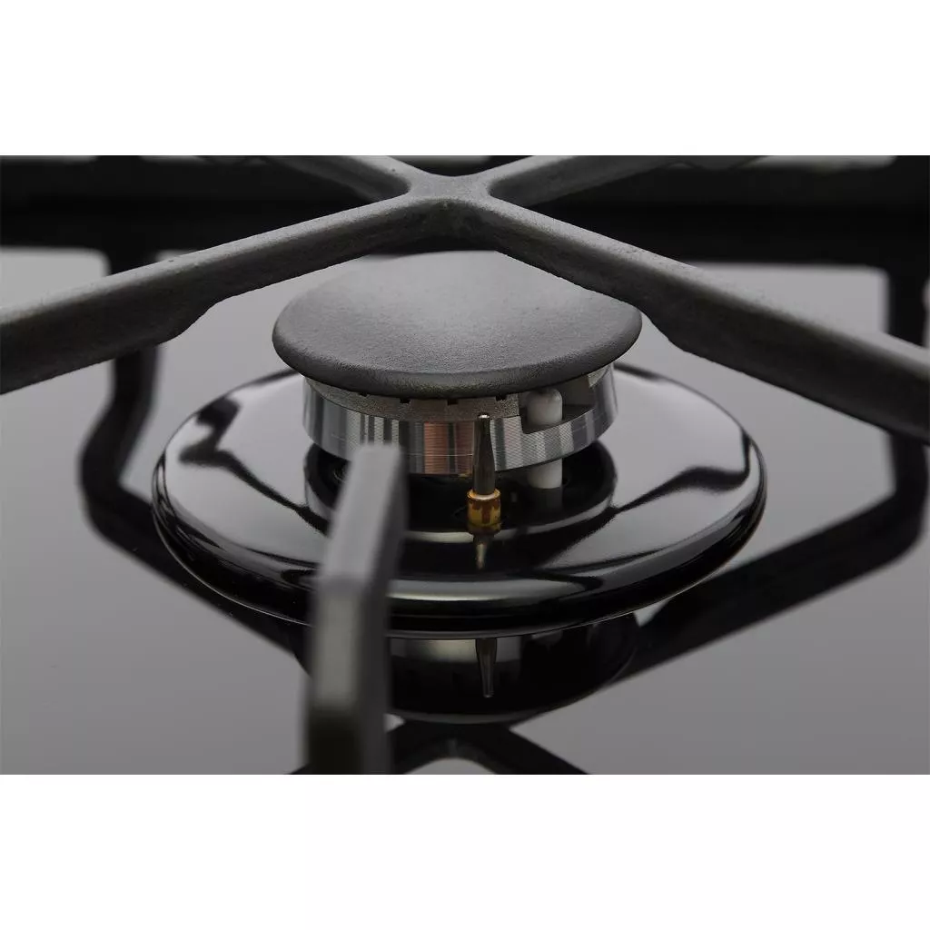 Встроенный в ручки электроподжиг позволяет быстро и легко поджечь конфорки. Чугунные решетки обеспечивают устойчивое положение посуды на варочной поверхности.