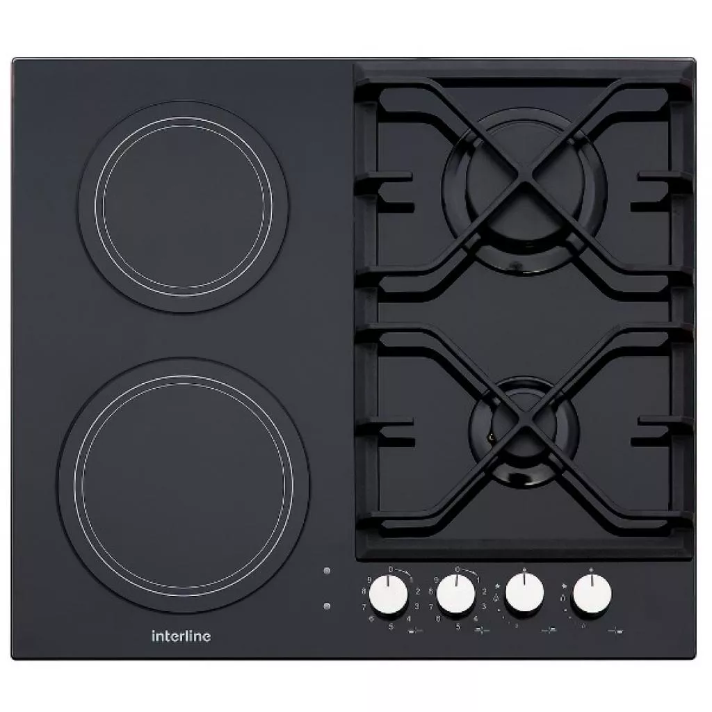 Комбинированная варочная поверхность INTERLINE TH 6316 BK оснащена двумя газовыми горелками и двумя электро, что значительно расширяет ее возможности во время готовки еды. В этой модели предусмотрено простое ручное управление, вы сможете точно пользоваться мощностью газовой горелки или же просто включить режим томления на электрической конфорке.