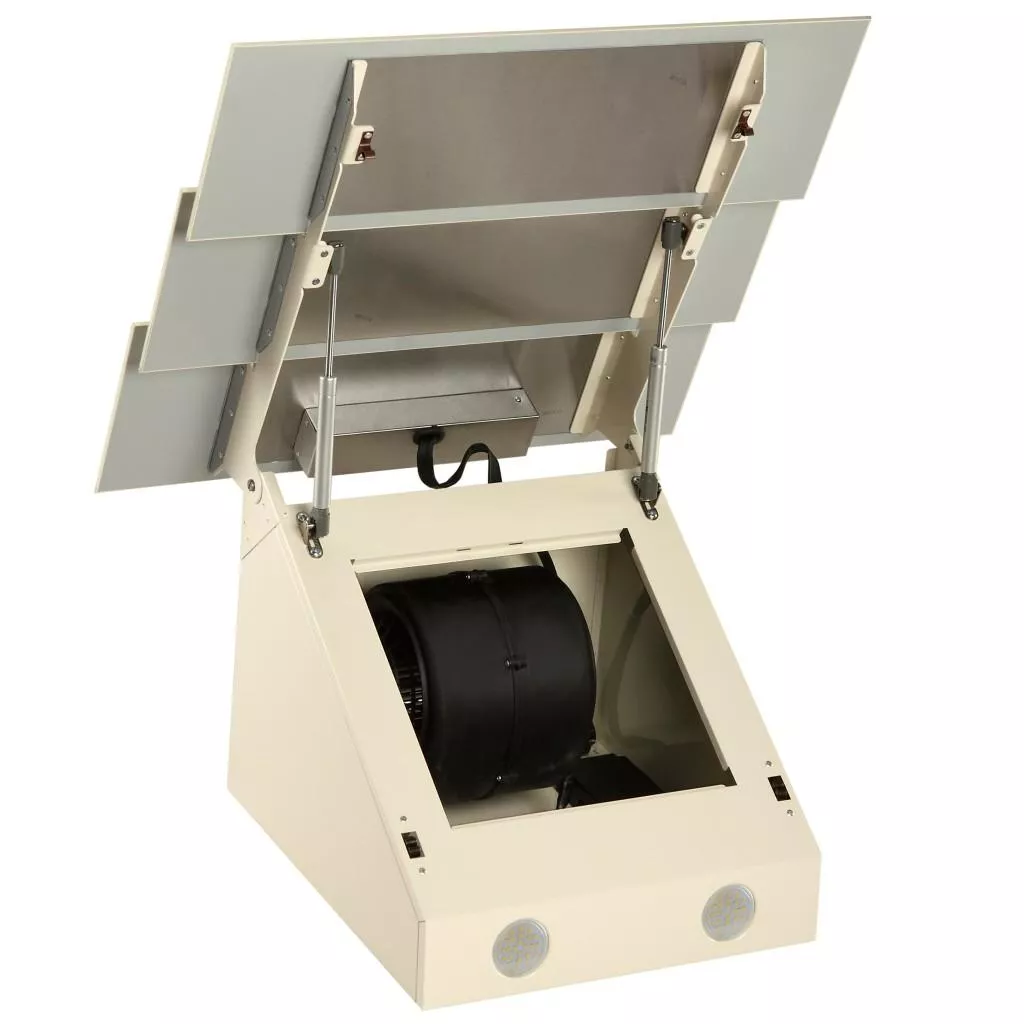 Кухонная вытяжка ELEYUS Troy 1200 LED SMD 60 обладает не только совершенным внешним видом. Одной из главных и уникальных ее преимуществ является абсолютно новый периметральный тип втягивания, что позволяет вытяжке эффективно втягивать воздух по всем своем периметре. Вместе с высокой производительностью турбины в 1200 м³/ч это делает кухонную вытяжку ELEYUS Troy 1200 LED SMD 60 лидером по скорости и качеству очистки воздуха в Вашей кухне. Кроме того, кухонная вытяжка ELEYUS Troy 1200 LED SMD 60 станет идеальным решением для владельцев кухонь с осложненным подключением к вентиляционной шахте, так как имеет возможность работать в режиме рециркуляции. Чтобы обеспечить режим рециркуляции следует оборудовать вытяжку двумя угольными фильтрами ELEYUS FW – E15100 и оставить свободным выход воздуха из турбины в пространство помещения.