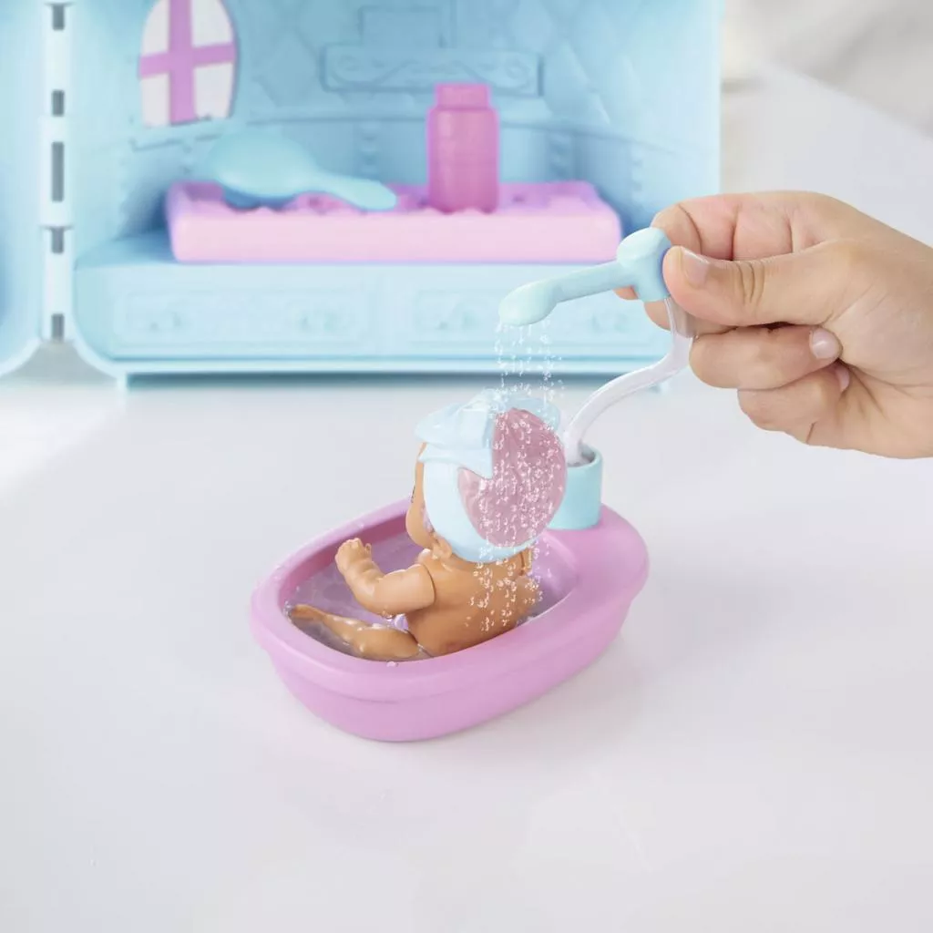 | Комплектация | 1 ванночка, 1 домик, 1 игровой коврик, 1 кроватка, 1 кукла, 1 стол и асессуары |