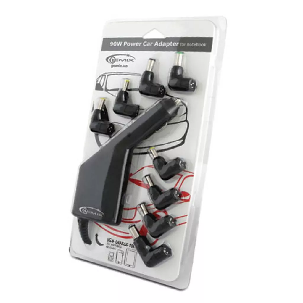 GEMIX Car Adapter 90W (05300134) представляет собой компактный сетевой адаптер для зарядки ноутбука/ультрабука мощностью 90 Вт для использования в автомобиле. Это не только автомобильная зарядка для ноутбука, в ней также есть USB порт 5 В / 1.5 А для зарядки различных мобильных устройств таких как: планшет, смартфон, MP3 плеер, фото и видеокамеры и так далее. Зарядка ноутбука и мобильного устройства может производится одновременно.