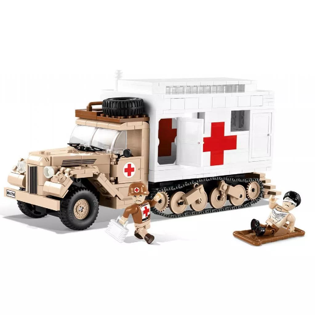 Полугусеничная машина, выпускаемая во время Второй мировой войны. Модель из кирпичиков COBI представляет собой версию авто для санитарных служб. Она имеет много движущихся элементов, таких как открывающиеся двери, вращающиеся колеса с резиновыми шинами и подвижные гусеницы.