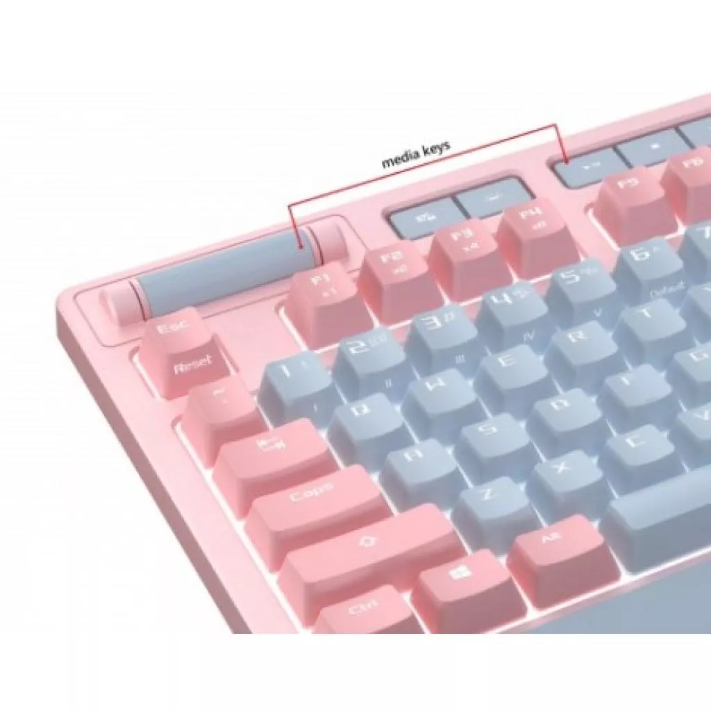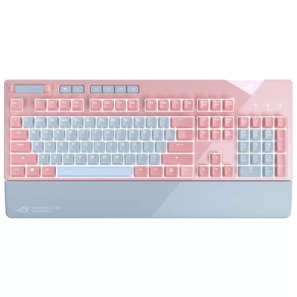 Механическая клавиатура ROG Strix Flare PNK LTD сочетает в себе великолепную эргономику с гибкими возможностями по персонализации с помощью настраиваемой подсветки Aura. В ней используются высококачественные переключатели Cherry MX RGB, поэтому каждая клавиша обладает выверенным усилием нажатия и четким срабатыванием. В левой верхней части клавиатуры располагаются специальные кнопки для управления воспроизведением мультимедийного контента, включая удобное колесико регулировки громкости звука. ROG Strix Flare PNK LTD – играйте в своем стиле!