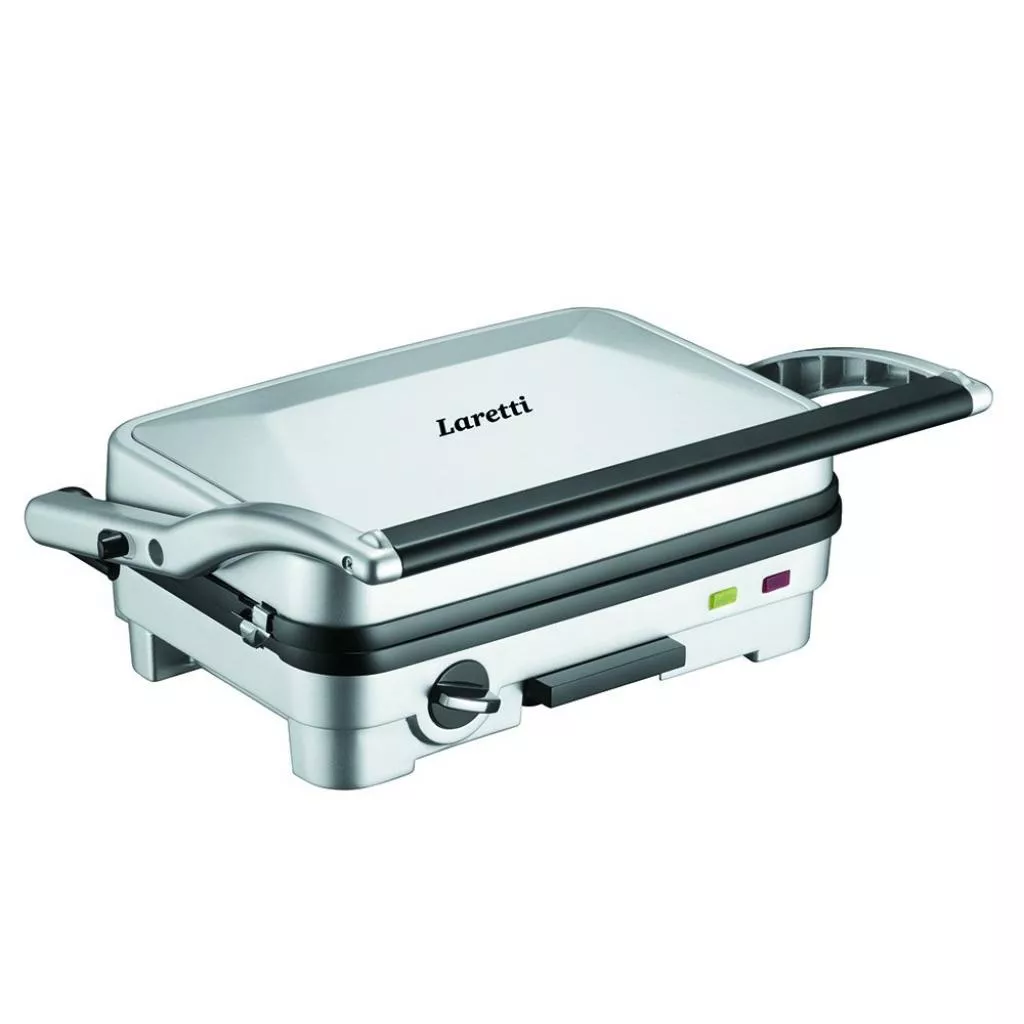 Laretti LR-EC8525 – это эффективный настольный гриль, с помощью которого можно приготовить много вкусных и интересных блюд. Состоит из двух половинок и открывается как книжка, на нижнюю часть ложится бутерброд или мясо и накрывается верхней частью конструкции. Таким образом, бутерброд нагревается, сыр сверху на нем плавится также сверху, можно добавить любые другие ингредиенты. Также, можно делать панини или просто разогревать заранее купленные для барбекю продукты.