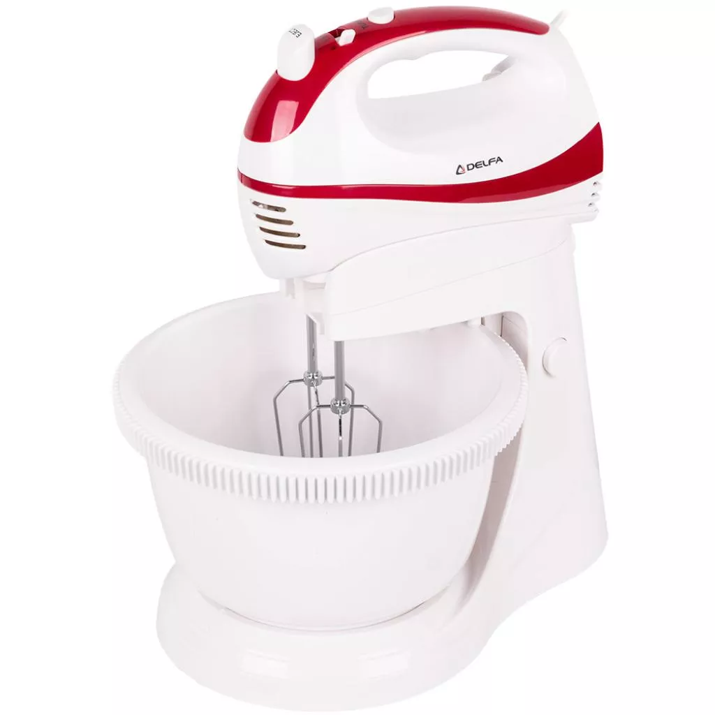 Стационарный миксер Delfa TM703 станет весьма полезен хозяйке в приготовлении множества блюд. А если вы любите печь торты, такой помощник вам просто необходим. Он поможет быстро взбить сметану или белки, а так же замесить тесто для торта или шарлотки. Мощности в 300 Вт вполне достаточно для качественного смешивания и взбивания. Для того что бы оптимально подобрать интенсивность вращения насадок и достичь желаемой консистенции предлагаются пять скоростей работы, а также турборежим для случаев, когда требуется более интенсивное смешивание. Миксер оснащен насадкой-блендер и двумя крюками для замеса теста.