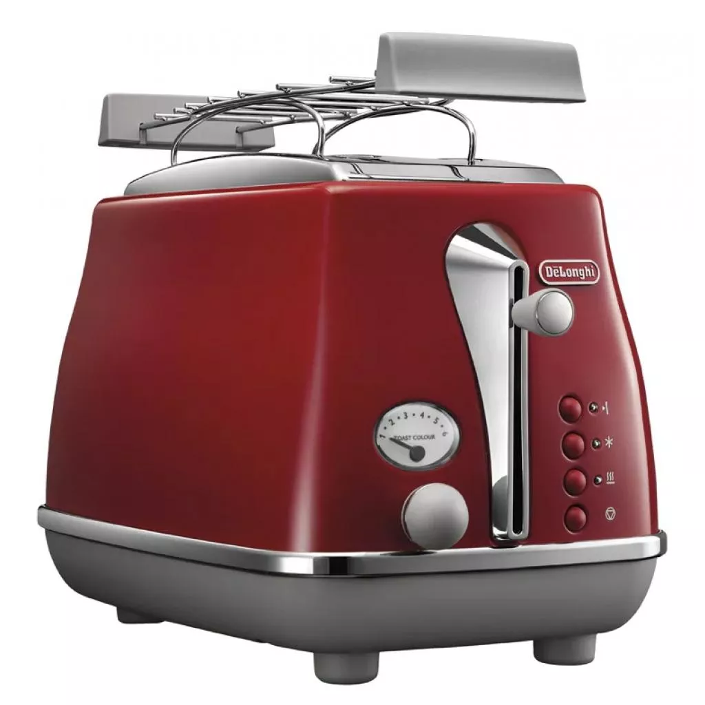 Тостер Delonghi CTOC 2103 относится к технике серии Icona Capitals. Каждое устройство этой линейки имеет изысканную внешность, объединившую в себе нотки винтажного и ультрасовременного стилей. Вместе они сформировали стильный образ, который имеет ряд эргономичных удобных в обиходе решений.
