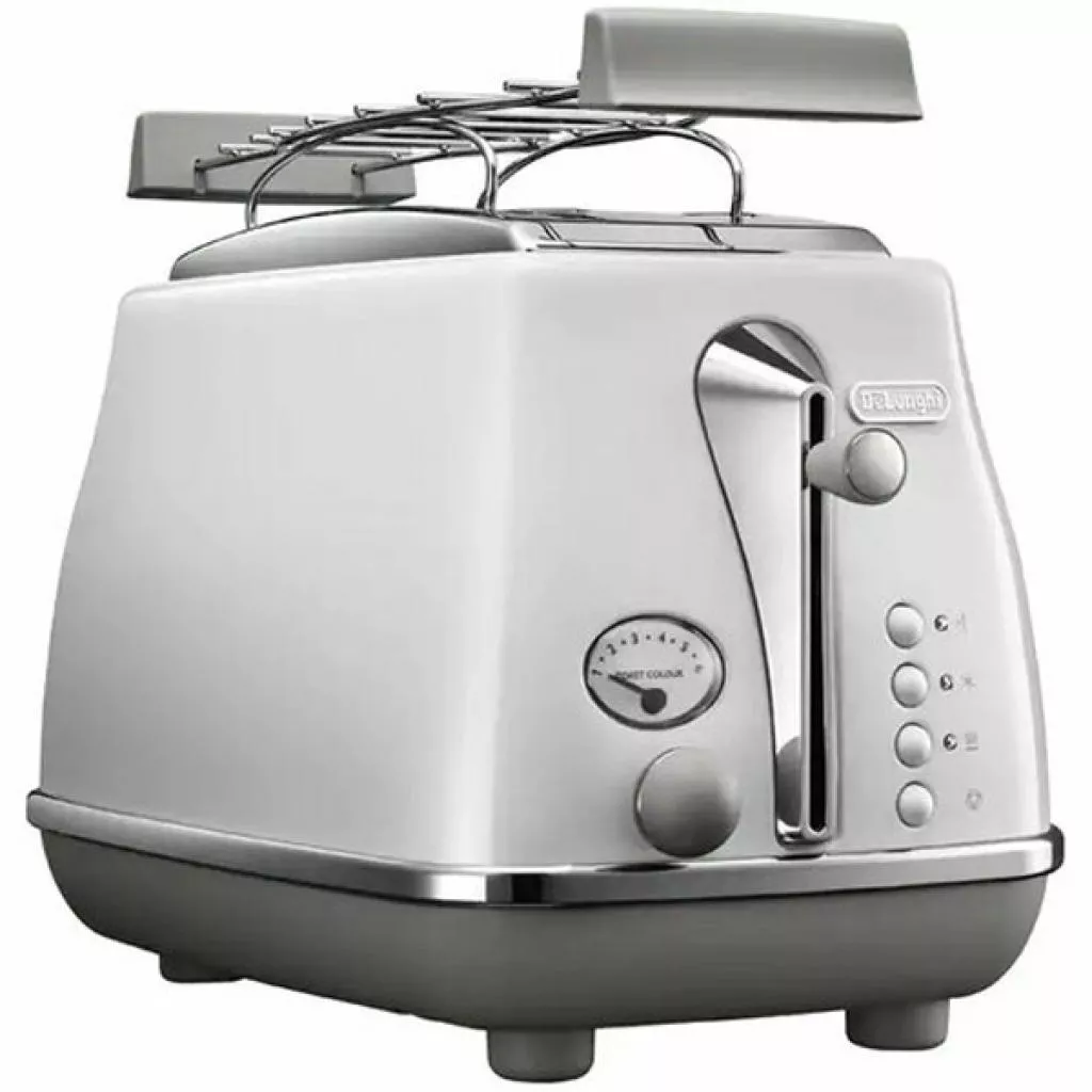 Тостер Delonghi CTOC 2103 относится к технике серии Icona Capitals. Каждое устройство этой линейки имеет изысканную внешность, объединившую в себе нотки винтажного и ультрасовременного стилей. Вместе они сформировали стильный образ, который имеет ряд эргономичных удобных в обиходе решений.