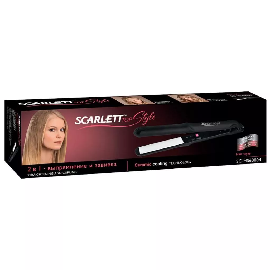 Выпрямитель волос – это очень важный инструмент в мире женщины. Он позволяет ей сделать магическое перевоплощение за считанные минуты. Совсем другой вид порождает совсем другое настроение. Незабываемое ощущения тепла на ваших пальцах при прикосновении к вашим ровным волосам. Ваша укладка неотразима, а улыбка не сходит с вашего лица! Выпрямитель волос Scarlett SC-HS60004 поможет вам в вашем магическом перевоплощении. Сейчас мы обратимся к его характеристикам.