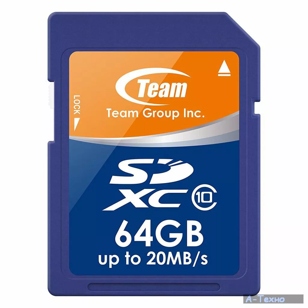 Карта памяти Team 64GB SDXC class 10 (TSDXC64GCL1001) - это карта памяти высокой производительности. Имеет скорость чтения 20 MБ/с и записи 16 МБ/с.