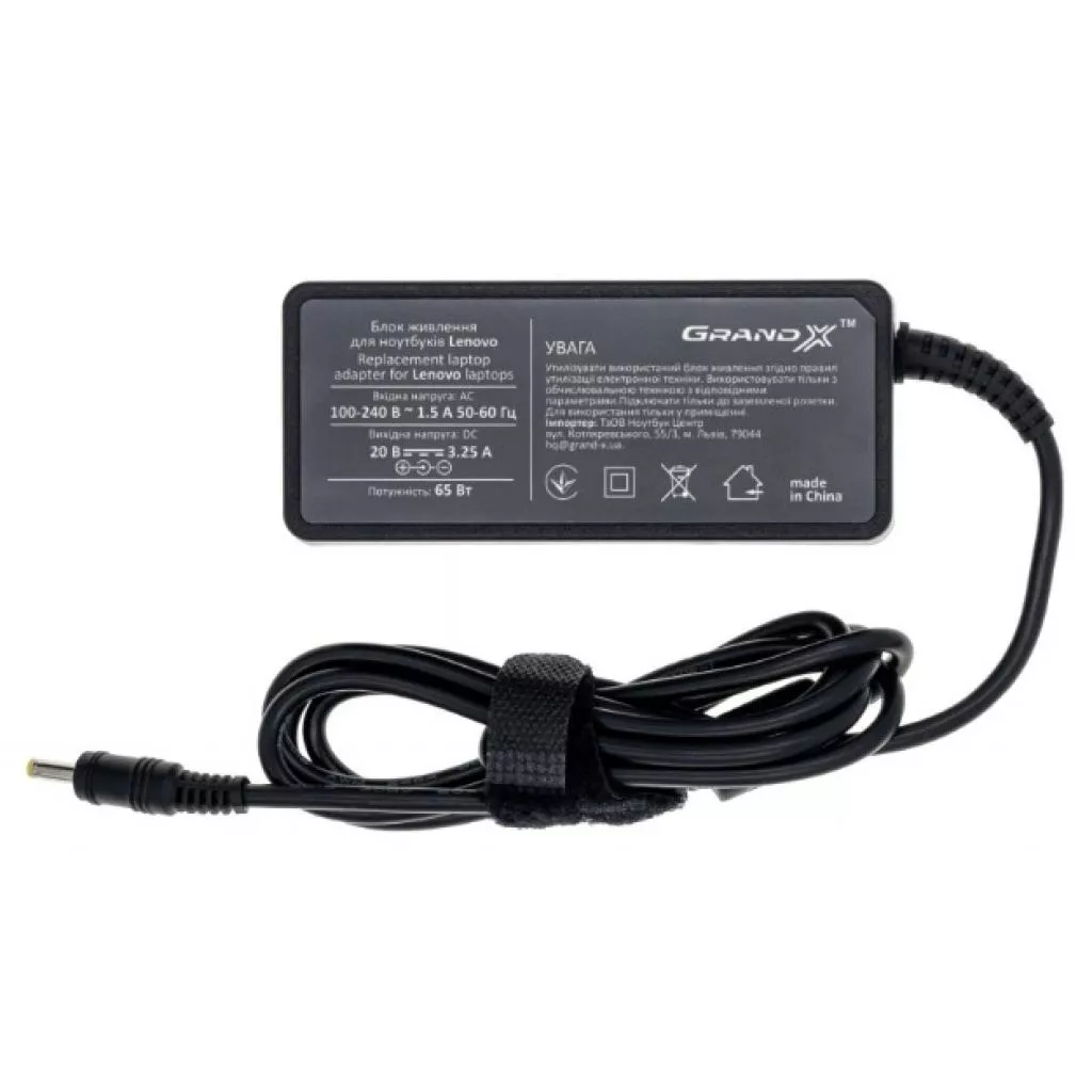 Блок питания к ноутбуку Grand-X Lenovo (20V 3.25A 65W) 5.5x2.5mm (ACLEL65WS) - купить в магазине цифровой техники a-techno.com.ua