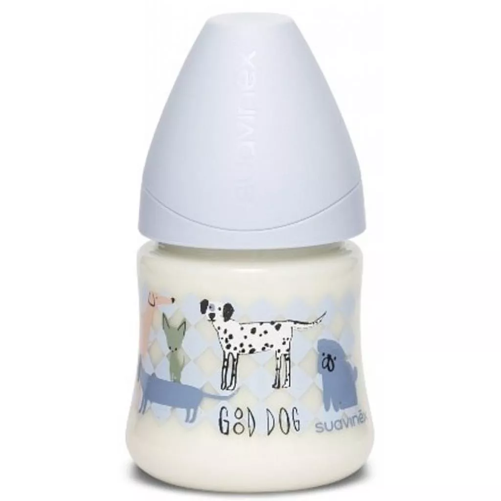 Бутылочка для кормления Suavinex (Суавинекс) Истории щенков с круглой силиконовой соской идеально подойдет для кормления малыша с рождения до 6 месяцев.