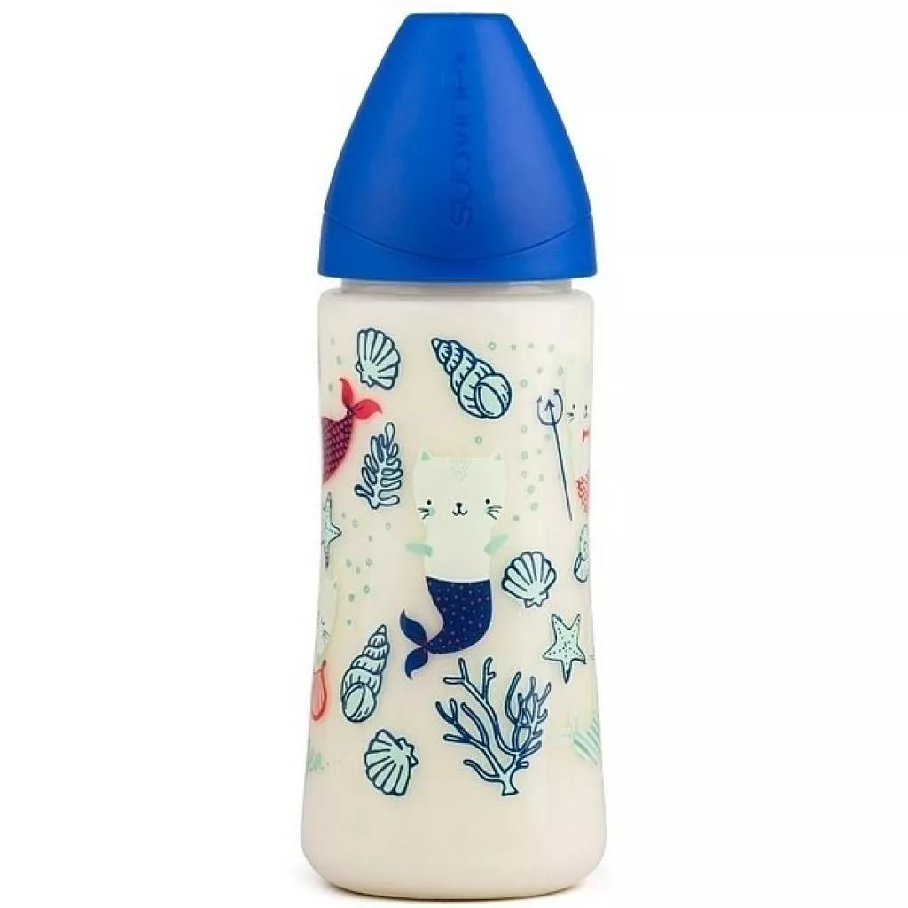 Бутылочка для кормления Suavinex (Суавинекс) Морские истории с анатомичной силиконовой соской идеально подойдет для кормления малыша от 6 месяцев.