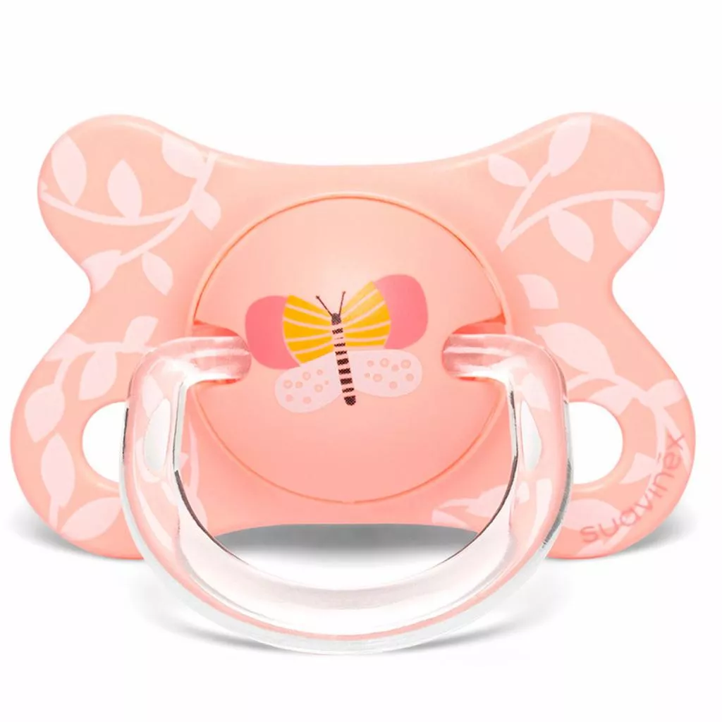 Пустышка силиконовая Suavinex (Суавинекс) Крылатые истории Розовые бабочки - физиологическая, удобная и абсолютно безопасная для ребенка.
