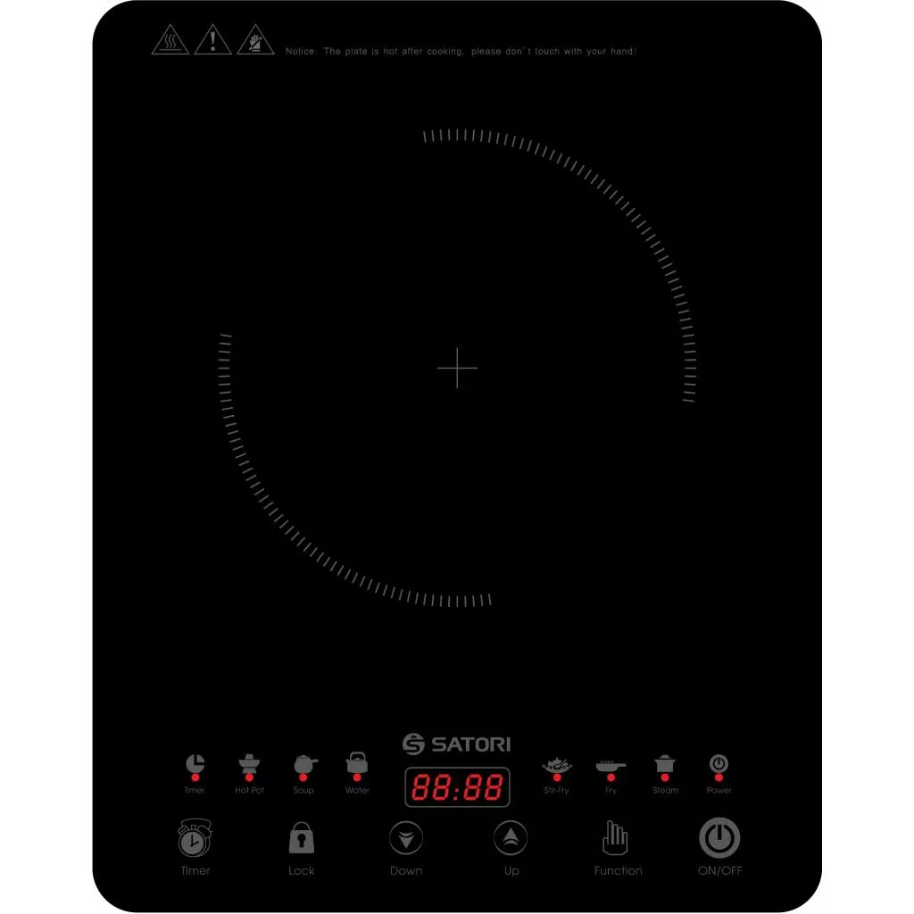 Настольная плита SIC-2000-BL предоставлена компанией Satori, как индукционная и небольшого размера. Данная плита имеет 6 программ и 8 уровней нагрева, что делает ее универсальной в использовании.