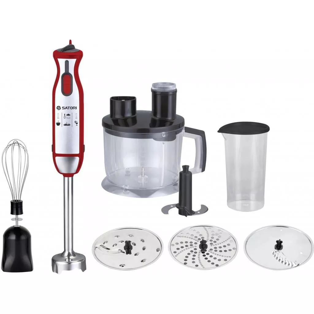 Удобная в использовании модель погружного блендера с хорошо продуманной конструкцией и большим набором аксессуаров, которые существенно расширяют возможности прибора. Мощность двигателя составляет 1200 Вт, чего вполне достаточно даже для работы со сложными и твердыми продуктами. В комплектации предусмотрены 2 насадки, среди которых насадка для терки, шинковки и венчик для взбивания. Блендер укомплектован чашей из пластика объемом 1,75 л, а также мерным стаканом вместимостью 600 мл. Для большего удобства в пользовании на корпусе присутствует LED-подсветка. Поверхность ручки прорезинена, благодаря чему устройство не выскальзывает из рук даже при длительной эксплуатации.