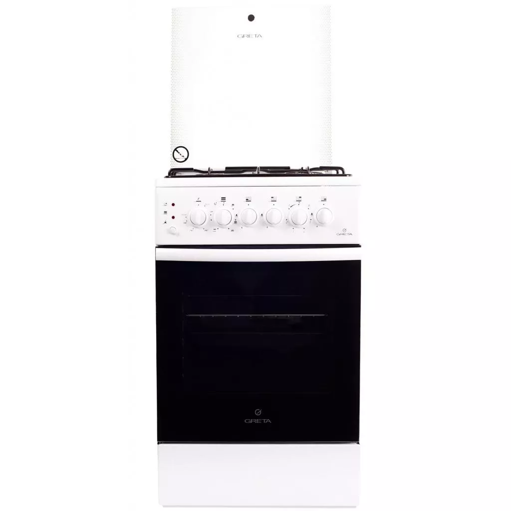 Плита Greta 1470-ГЭ/00 Wh - это качественная комбинированная плита, которая удачно сочетает и совмещает в себе газовые горелки, расположенные на варочной поверхности, и электрическую духовку. Данная модель является весьма компактной, имеет стеклянную крышку, регулируемые ножки для удобства установки и практичный ящик с откидной крышкой для хранения принадлежностей. Варочная поверхность предложит для работы 3 газовые горелки со стальными решетками и функцией электроподжига, а также одну электрическую конфорку. Не менее перечень функций и возможностейьна и духовка, полезным объемом в 50 л, максимально возможная температура в которой достигает 270 градусов, имеются дверцы из стекла и подсветка. А благодаря используемой для ее покрытия эмали легкой очисти, не возникнет сложностей с уходом за плитой даже при постоянной интенсивной эксплуатации.