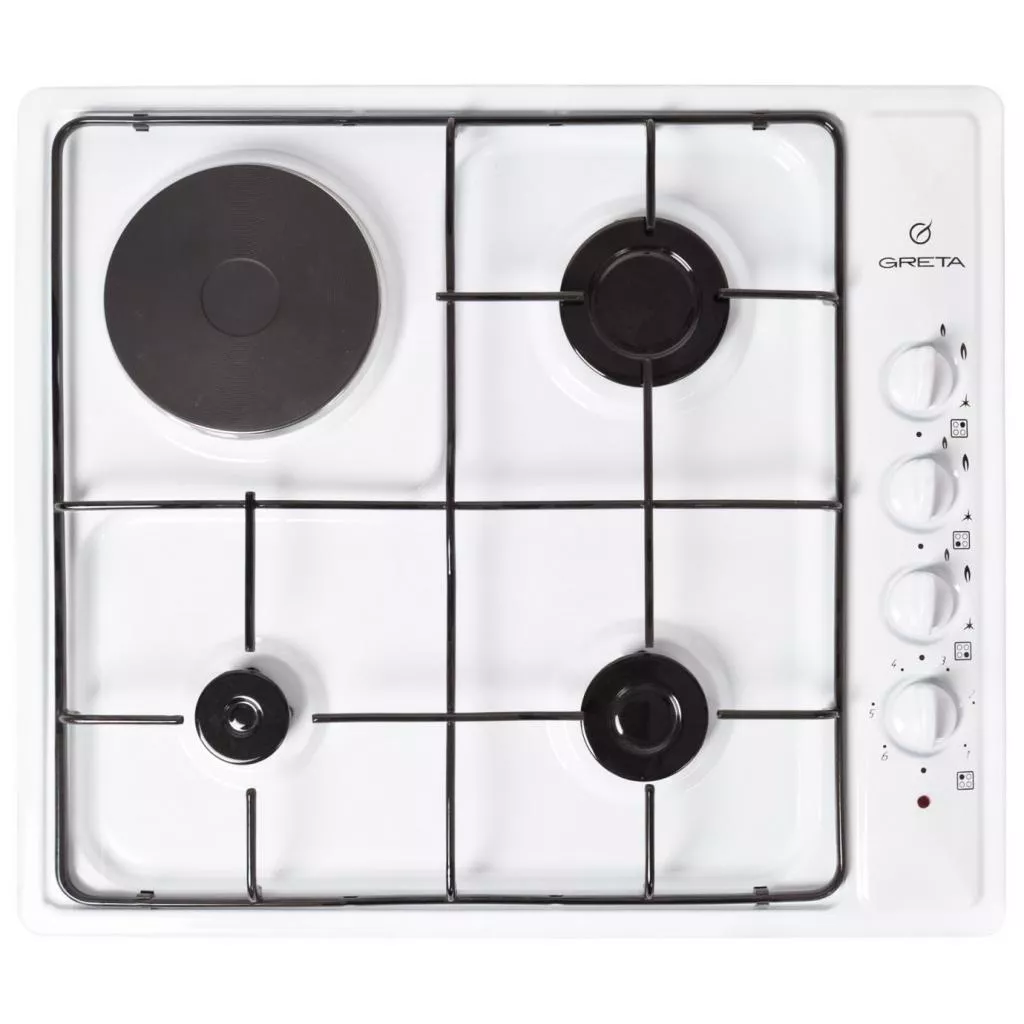 Варочная поверхность Greta СВ ГЭ (3/1) – это варочная поверхность с комбинированными конфорками. А это значит, что имеются как газовые, так и электро горелки (3 газ + 1 электро). Стоит отметить, что данная модель простая и удобная в управлении мощностью подогрева, для этого реализовано четыре поворотных переключателя с индикатором включения.
