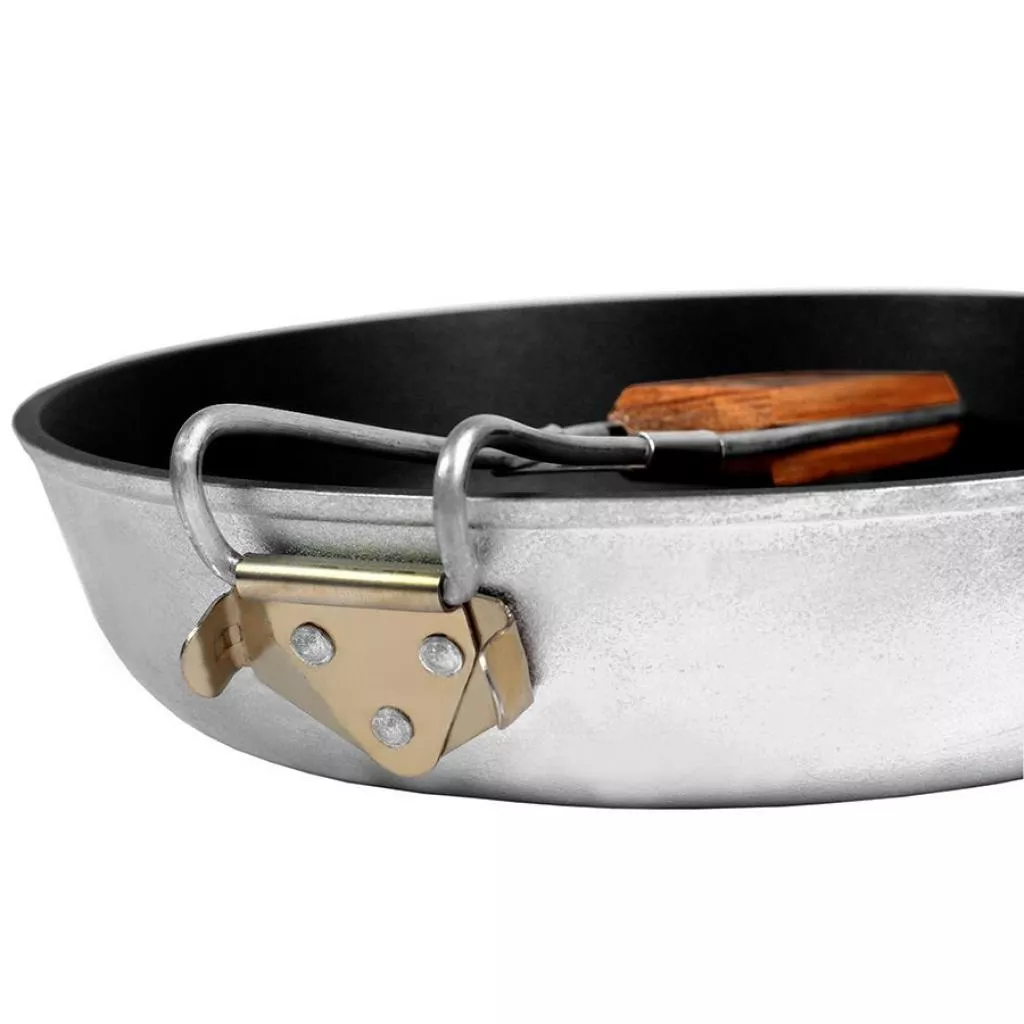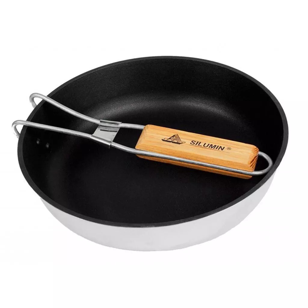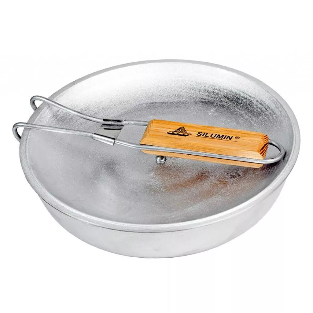 Сковорода походная с антипригарным покрытием и ручкой прочная и легкая, предназначена для приготовления разнообразных блюд во время пикника или туристических походов. Особенность модели - глубокое дно с антипригарным покрытием. Крышка входит в комплект, для удобства использование (эксплуатации) на ней имеется жаростойкая ручка. Комфортное использование (эксплуатации) и удобство транспортировки обеспечивает откидная ручка из стального провода. важные особенности сковороды Тime Eco БЛС26: материал: алюминий; вес: 1.5 кг; объем: 2.7 л; диаметр: 260 мм; габаритные размеры : 520 х 275 х 75 мм; высота стенок: 65 мм; крышка в комплекте.