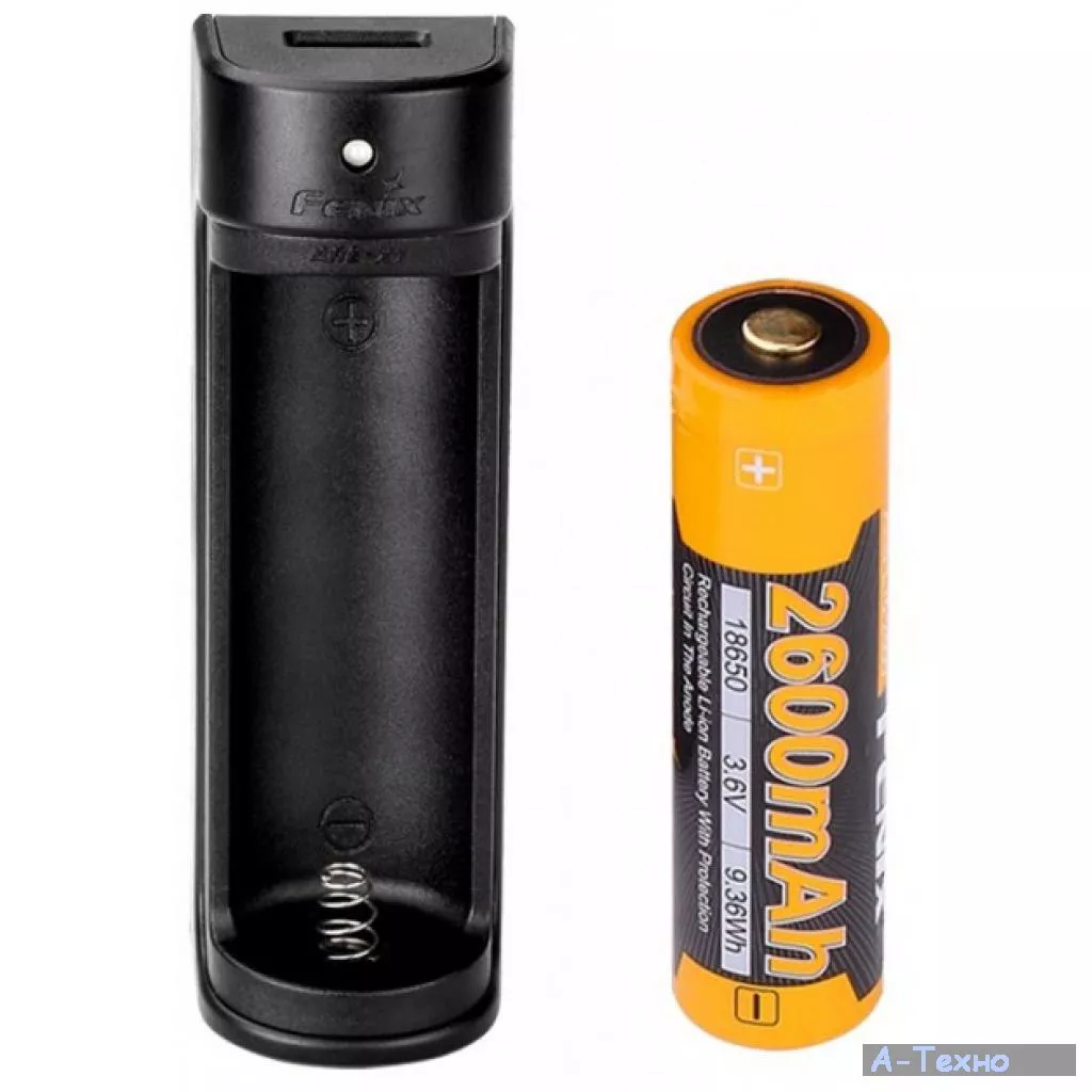 Рассмотрим компоненты набора подробнее. Аккумулятор из комплекта Fenix ARE-X1 kit — это литий-ионный перезаряжаемый элемент питания, емкость которого составляет 2600 мАч. Это качественный фирменный аккумулятор с большим ресурсом работоспособности. Он в состоянии выдержать 500 циклов перезарядки, сохраняя близкие к изначальным показатели емкости. Такой аккумулятор защищен от перегревания внутри приборов, от переполюсовки и слишком сильной разрядки/зарядки.