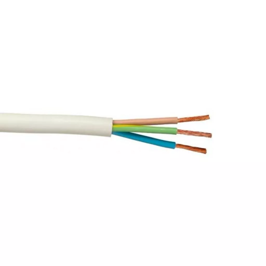 Кабель силовой ПВС 3х1,5 - провод соединительный гибкий, имеет многопроволочные медные жилы в количестве 3, и сечением 1,5 мм.кв. Внутренняя оболочка и внешняя изоляция выполнены из пластиката поливинилхлорида. Цветная маркировка соответствует международным стандартам: синий - ноль, желто-зеленый - заземление, остальные провода - фазовые.