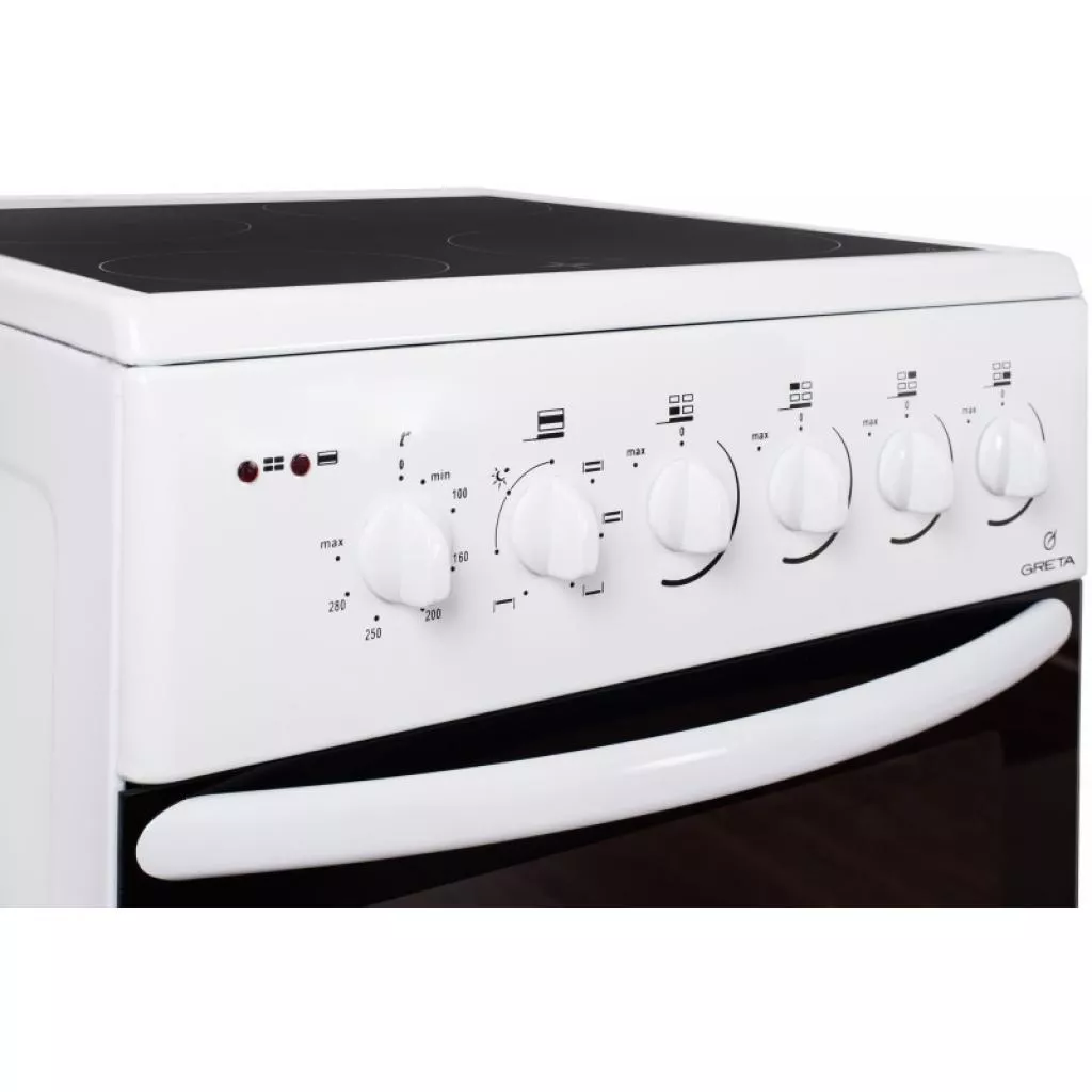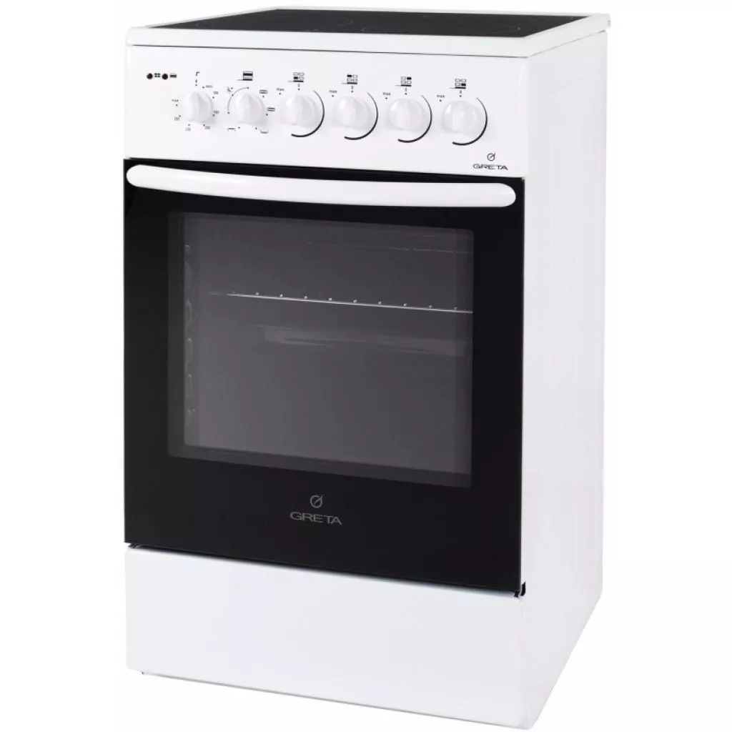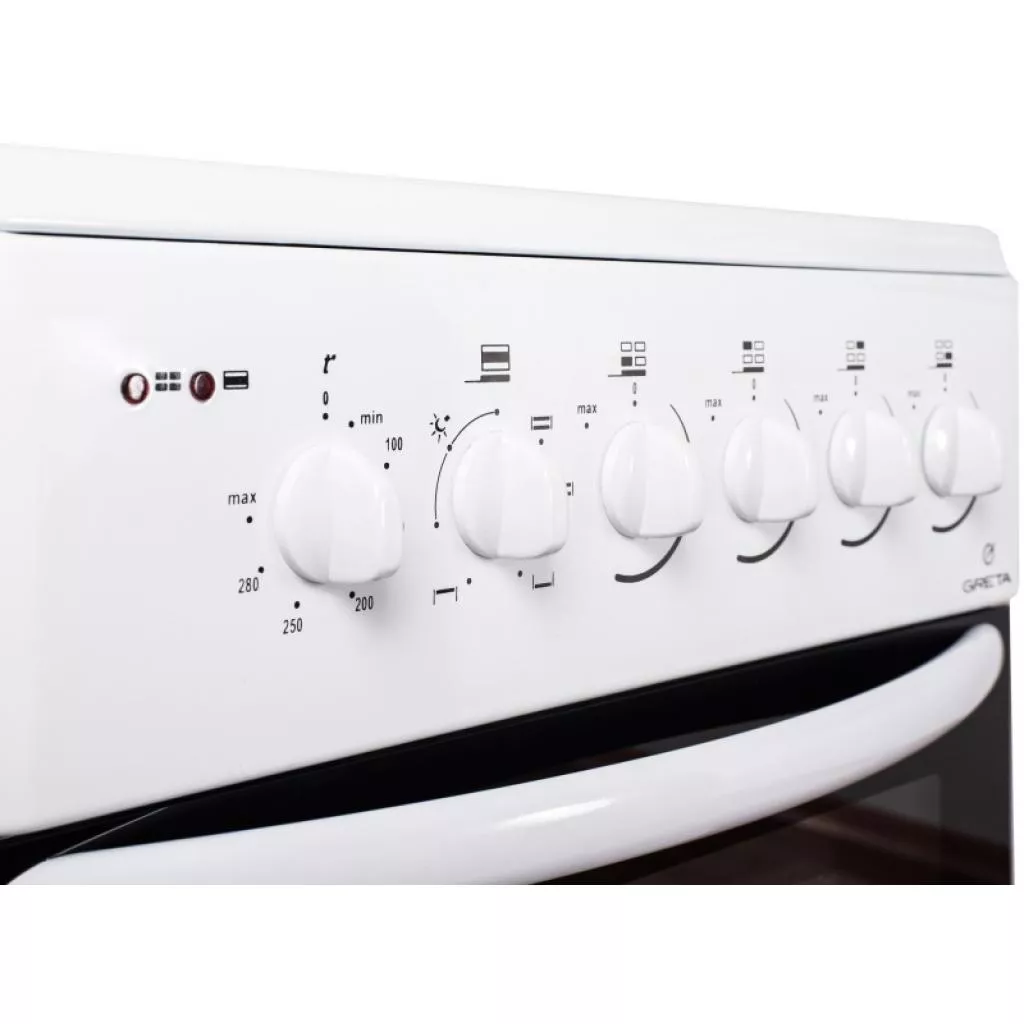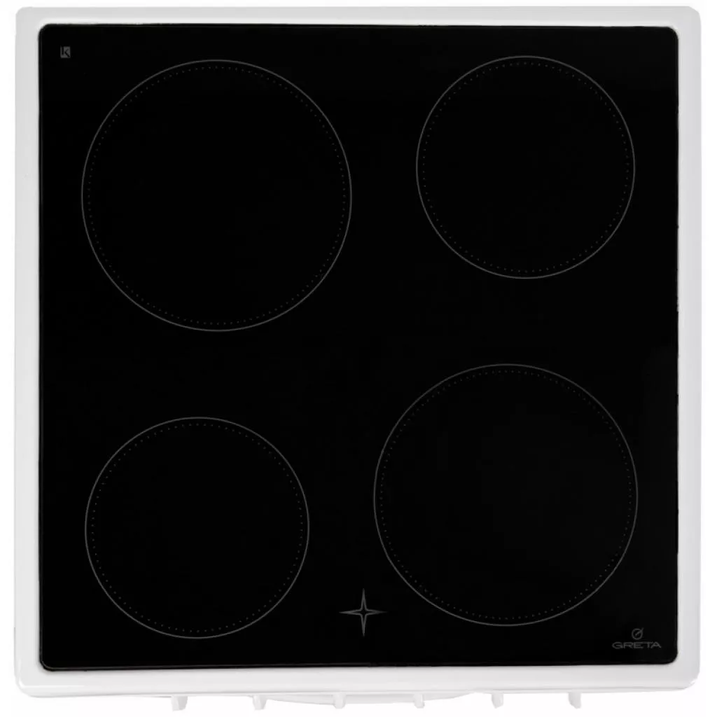 Плита электрического типа Greta 1470-Э СК-03 White выполнена в белоснежном цвете. Поверхность - черное стекло, а дверца духовки - прозрачное стекло в черном обрамлении. Дверца для большего удобства имеет красивую округлую ручку. Размеры плиты 85х50х54 см. Имеются регулируемые ножки, чтобы можно было выставить плиту на разной поверхности пола. Кроме того, в наличии есть откидная крышка, которой можно закрыть варочную поверхность плиты в то время, когда вы ею не пользуетесь.