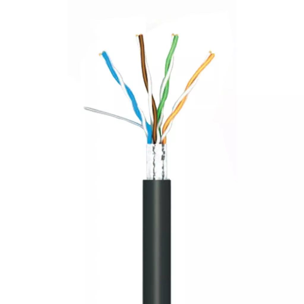 Специально для внешней прокладки в случае возможных внешних воздействий или нагрузок существует эффективное решение – сетевой кабель витая пара с тросом. Экранированная витая пара предназначается для монтажа и наружного использование (эксплуатации) вне помещения или в помещениях с высокой влажностью, вероятностью вредительства грызунов и прочее. Витая пара диаметром 0,51 мм усилена стальным тросом диаметром 1,5 мм.