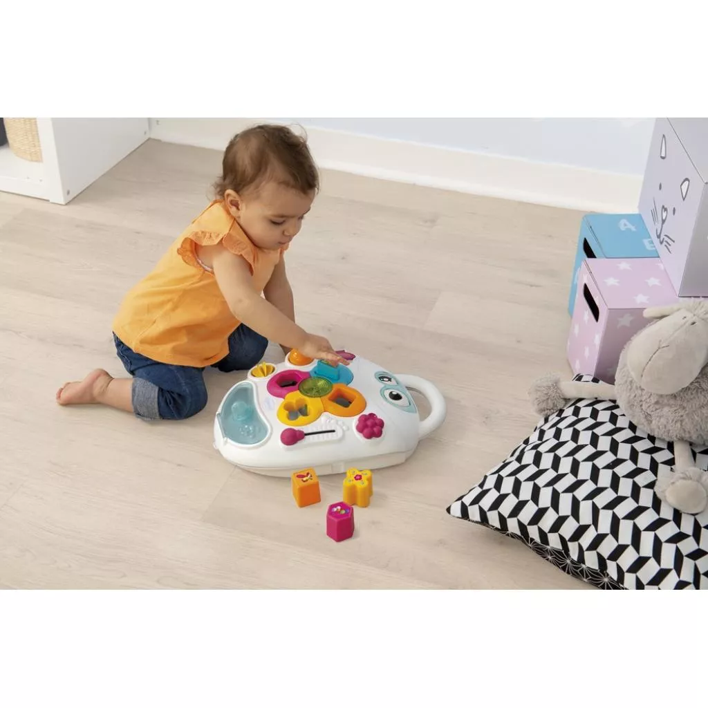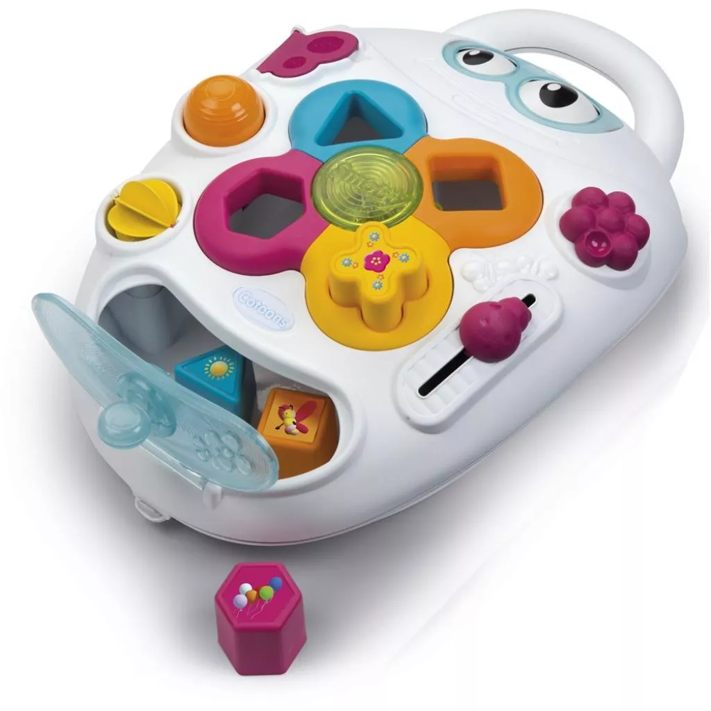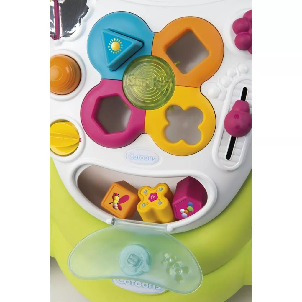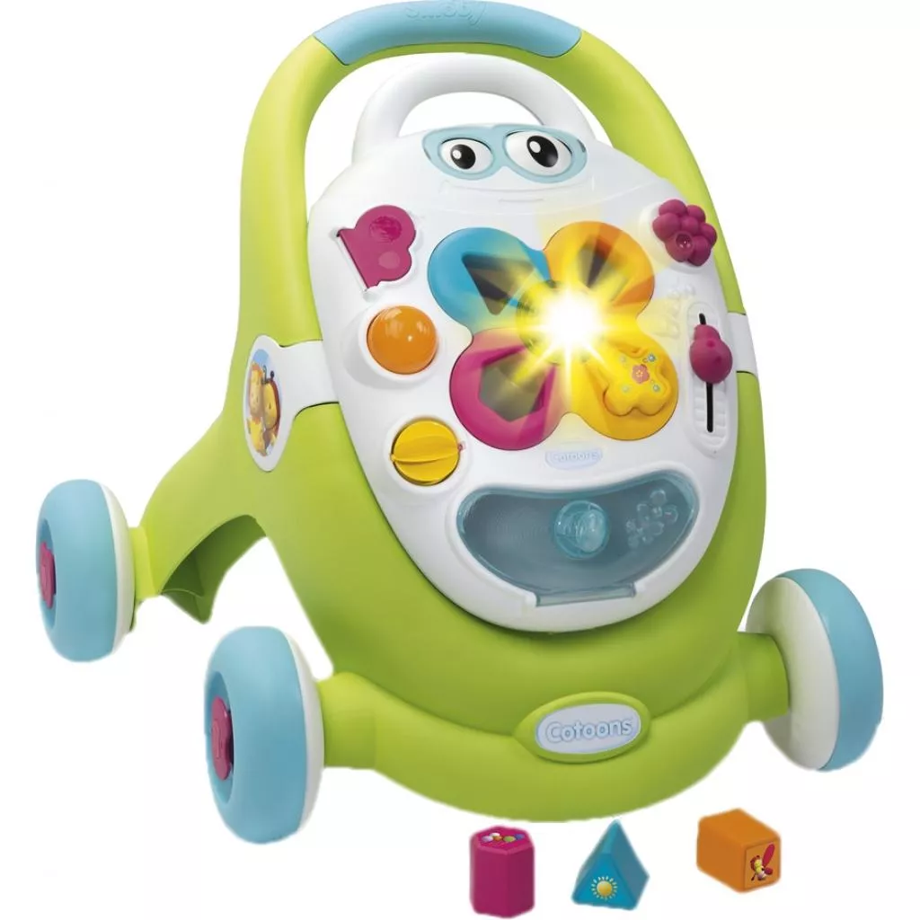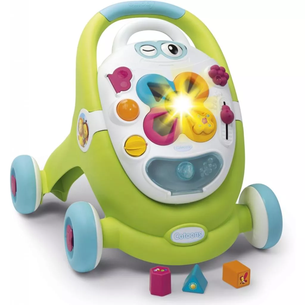 Малыши одновременно с первыми шагами, становятся очень любознательными. Компания Smoby разработала универсальный учебно — игровой центр Cotoons Цветочек. Включает в себя две функции сразу. Это надежные ходунки, которые помогают маленьким исследователям сделать свои первые шаги и интересные познавательные игры на моменты отдыха от прогулок. Эргономичная ручка обеспечит уверенность ребенку, что он не упадет. Если ваш малыш устал от прогулки и решил отдохнуть, колеса можно зафиксировать и переключить внимание на игровую панель.