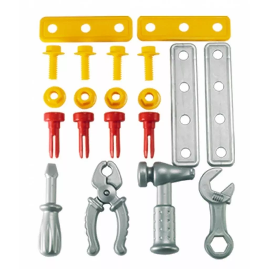 Маленькие строители смогут найти применение набору из всевозможных инструментов. Все элементы набора изготовлены из прочных высококачественных материалов, гарантирующих безопасность ребёнка.