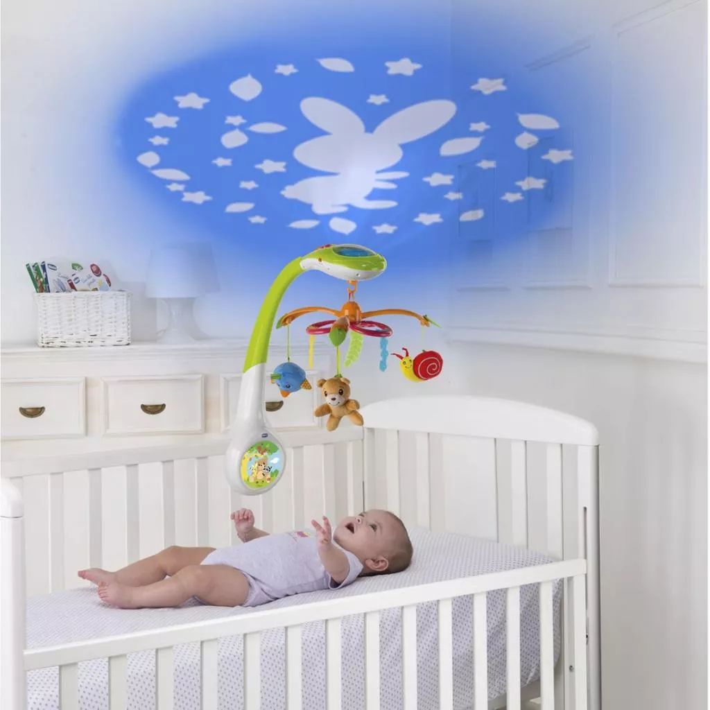 Музыкальный мобиль-проектор на кроватку Chicco "Волшебный лес" создает сказочную атмосферу в детской комнате, помогая ребенку расслабиться перед сном.