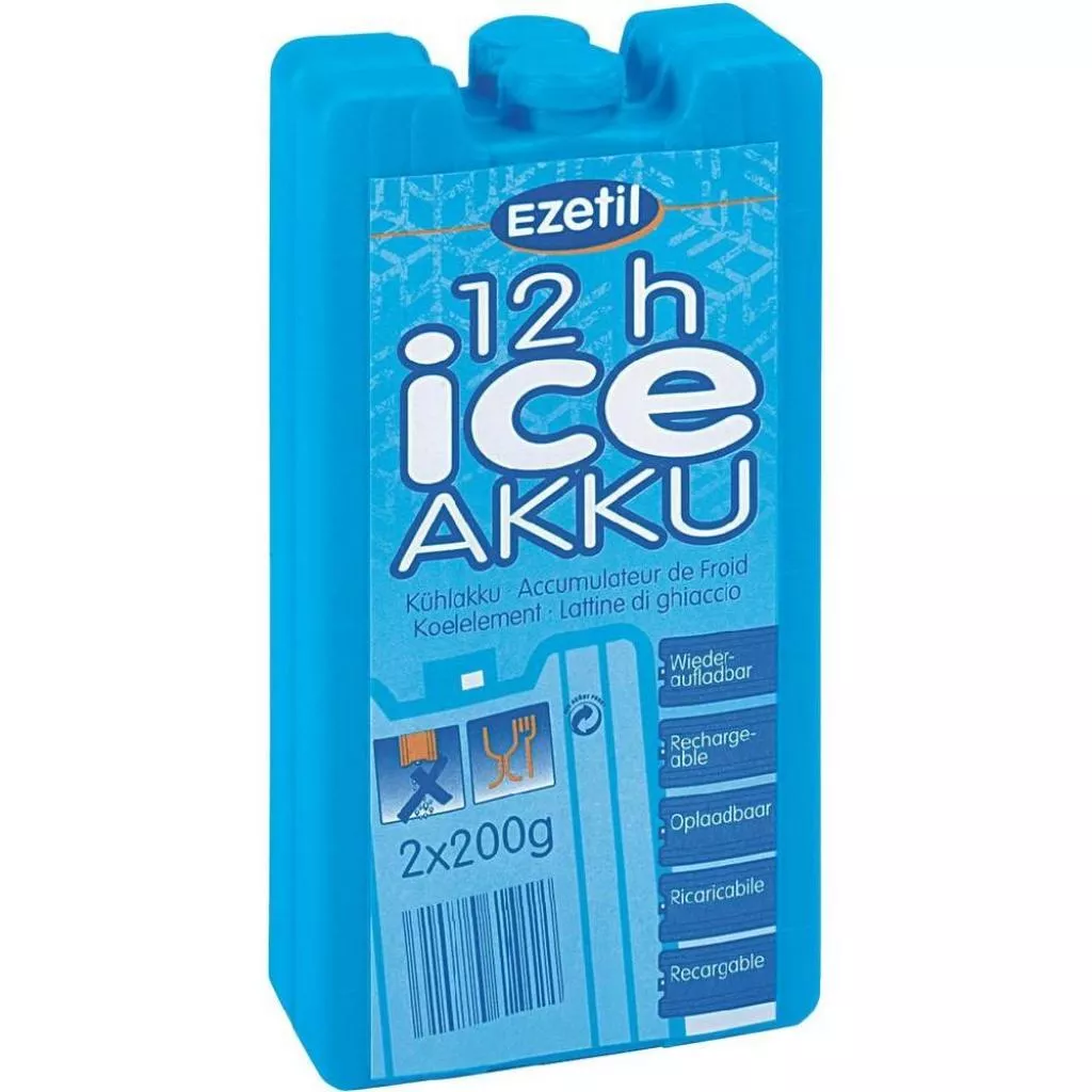 Брикеты EZETIL Ice Akku выпускаются в комплектах по 2 шт. и имеют различия по весу (2х200гр, 2 х300гр, 2 х400гр) для различного объема сумок-холодильников.