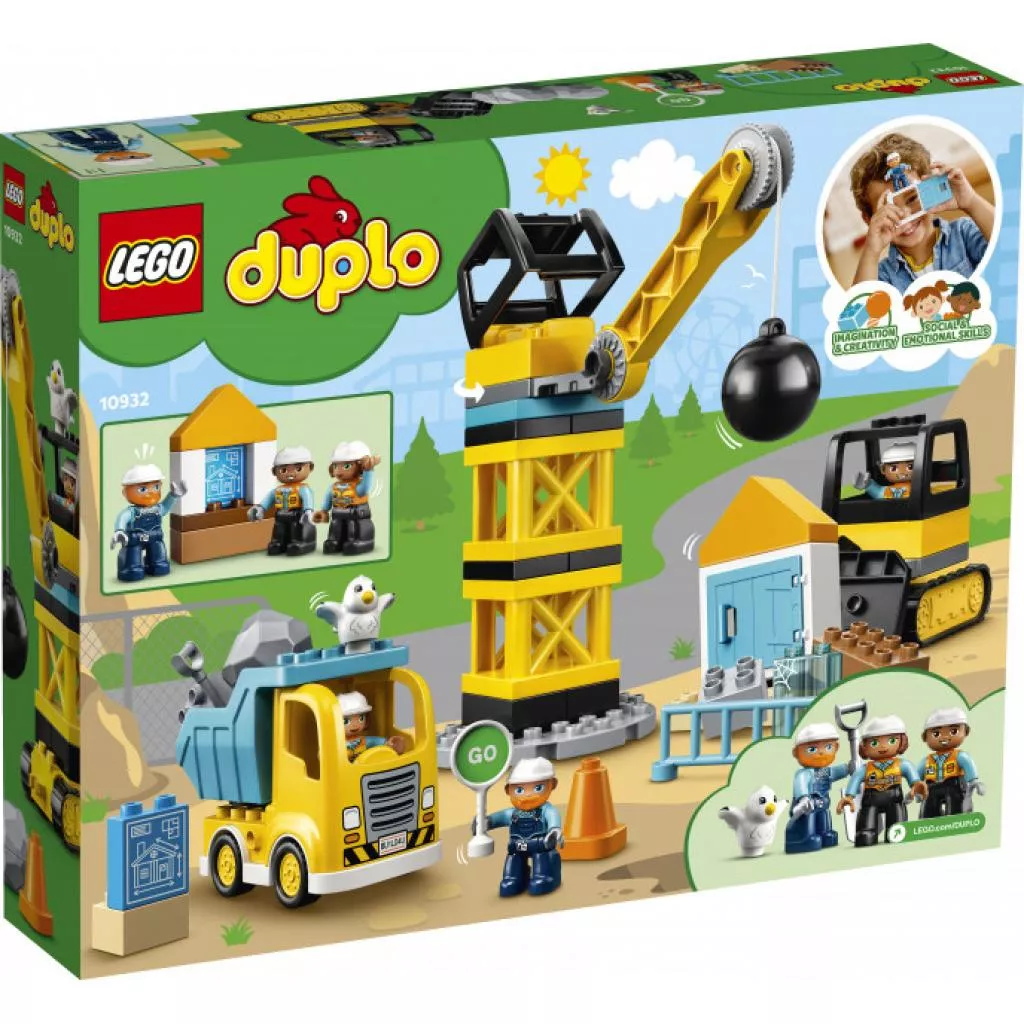 Набор «Шаровой таран» LEGO DUPLO помогает дошкольникам развивать важнейшие навыки в процессе увлекательных творческих игр. Включающий в себя подъёмный кран с регулируемой по высоте стрелой, самосвал и бульдозер, предоставляет безграничные возможности для игр.